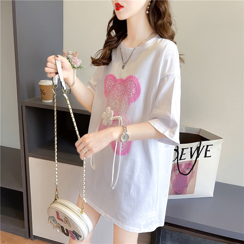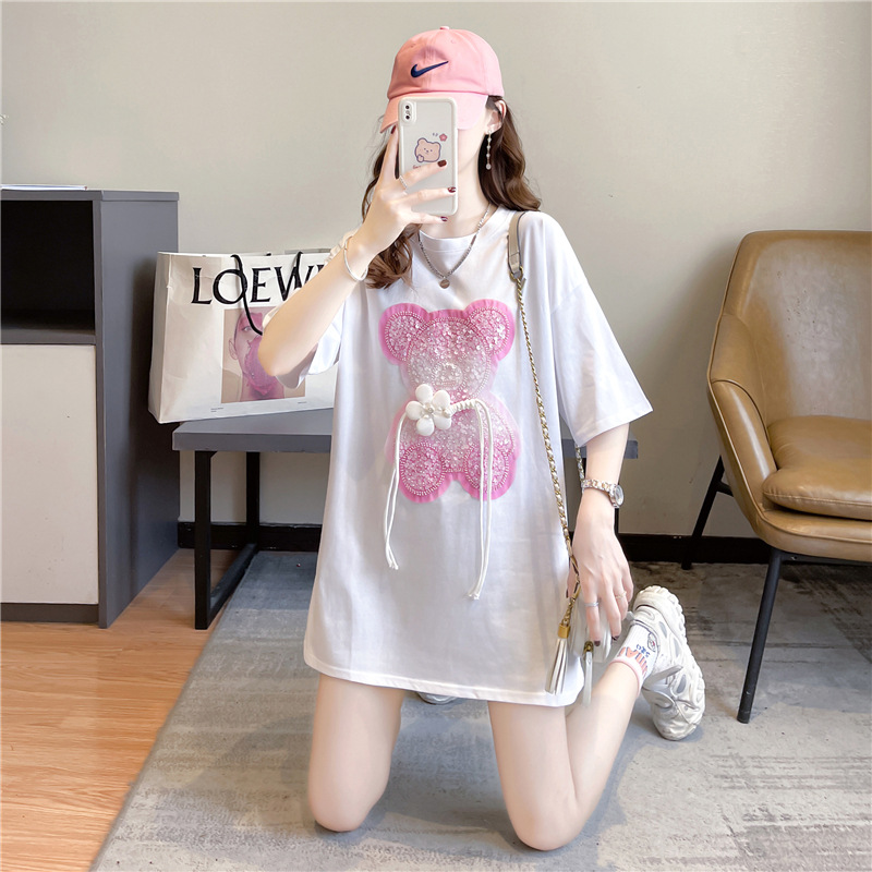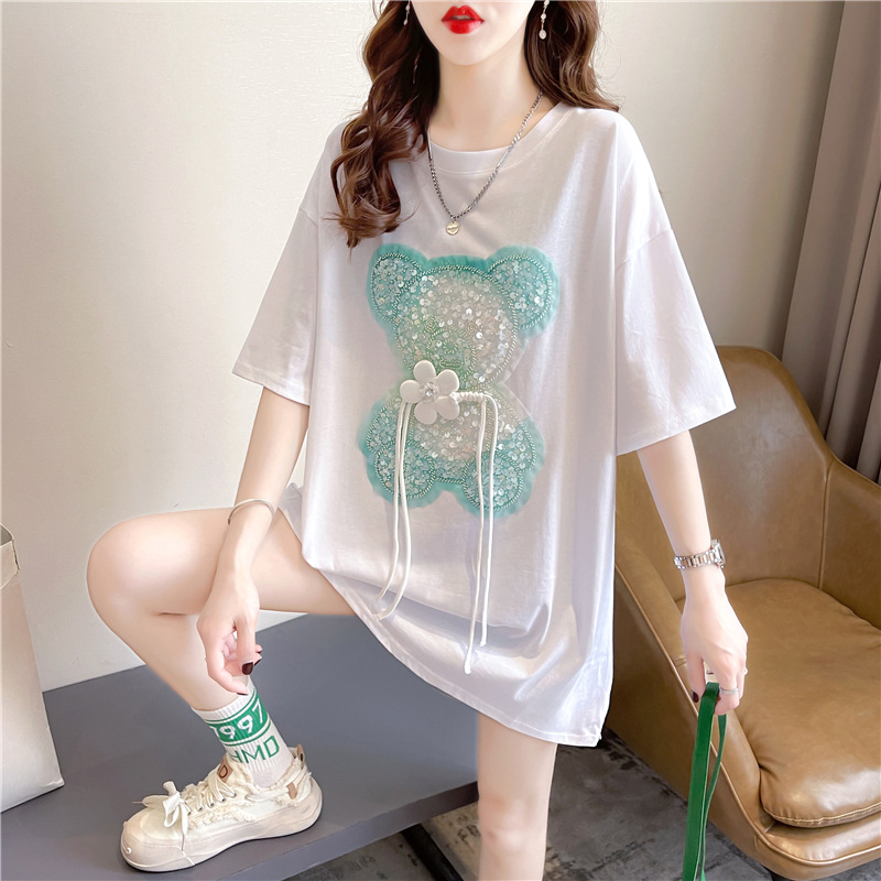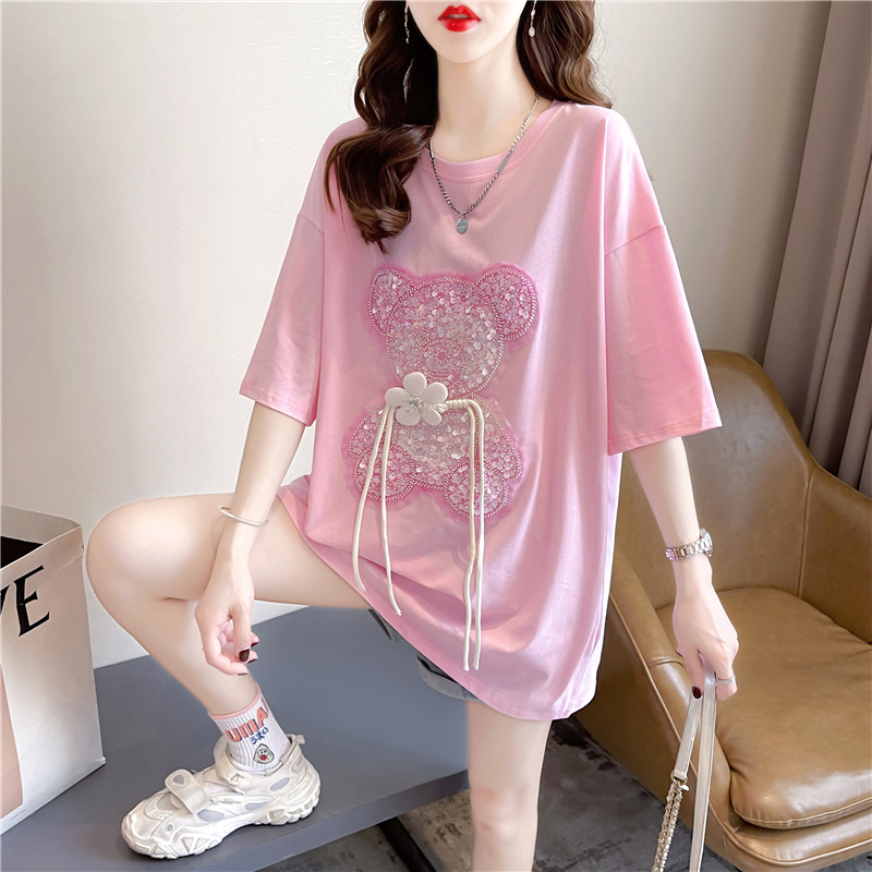 棉欧货重工烫钻钉珠2025年新款爆款大t恤女短袖洋气时髦广州产地