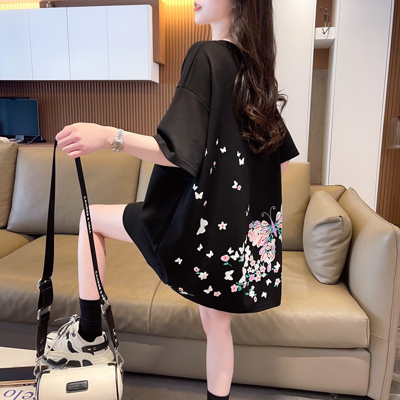 胖妹妹MM宽松大码女装T恤纯棉夏季宽松短袖字母通勤印花上衣爆款