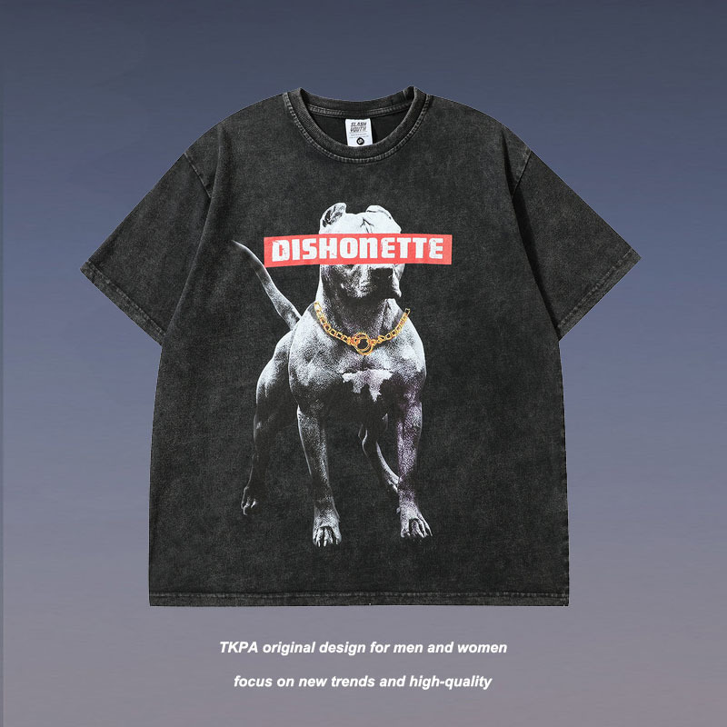 美式复古短袖t恤男宽松潮牌夏季印花ins潮流水洗半袖体恤外贸