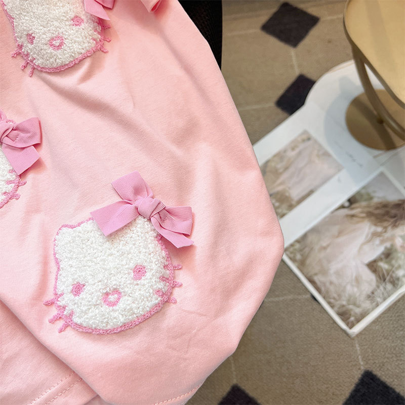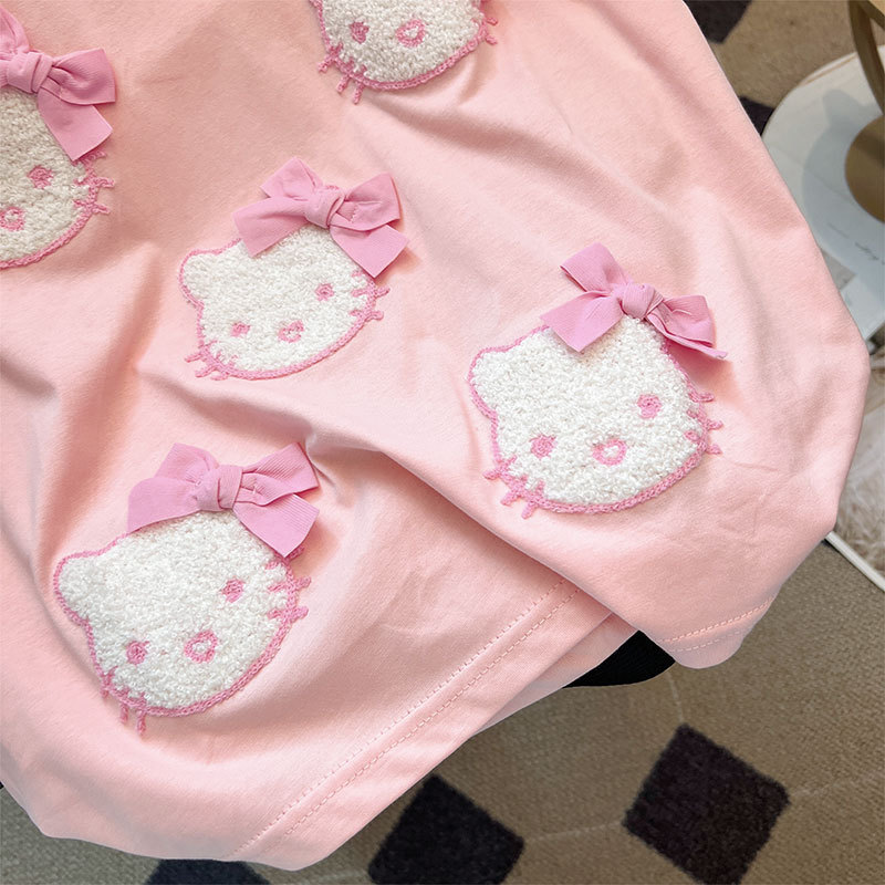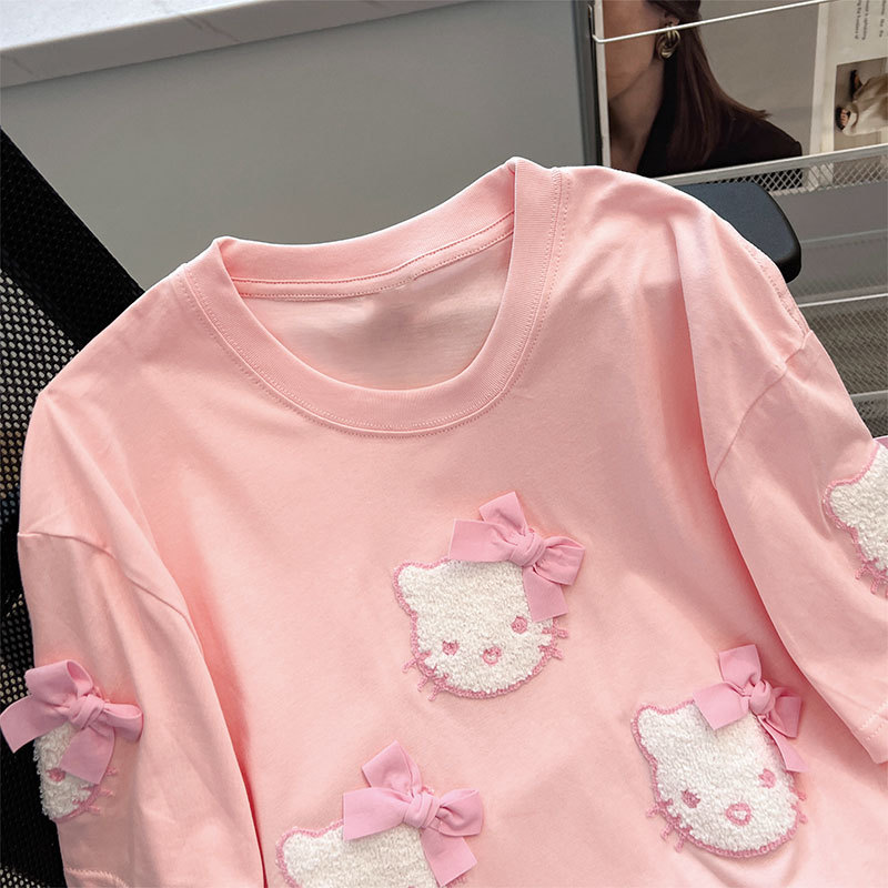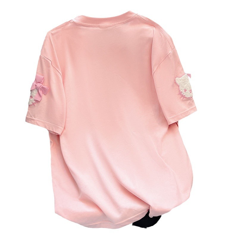 粉色kitty猫咪宽松短袖t恤女夏季2025新款设计感洋气减龄可爱上衣