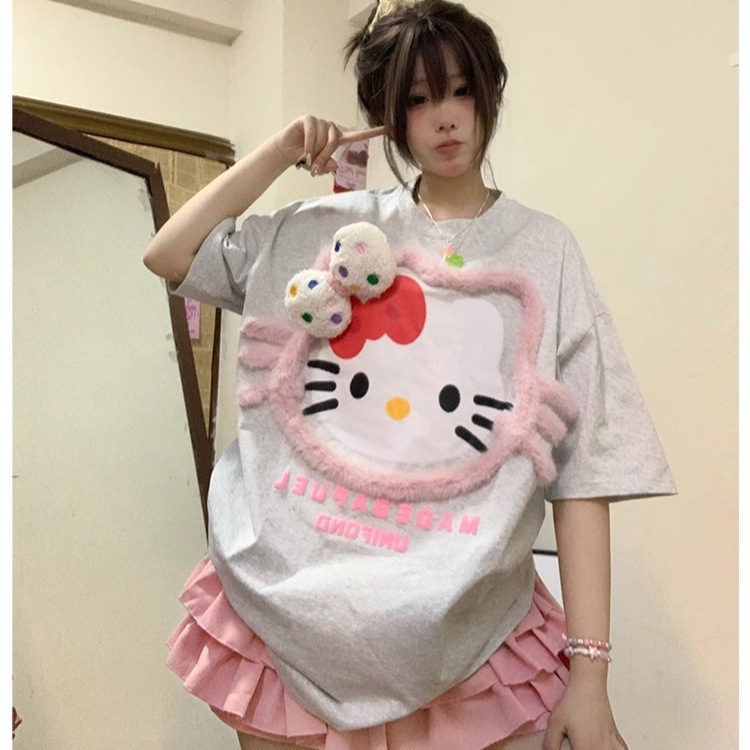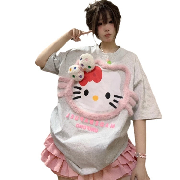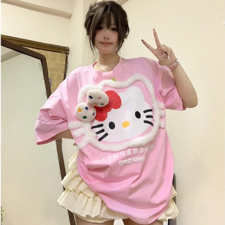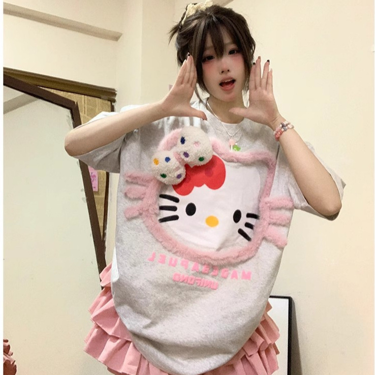 美式可爱甜妹设计感hellokitty短袖t恤女新款夏季设计感小众上衣