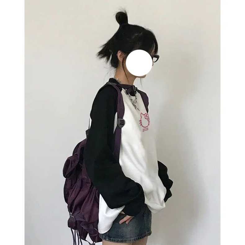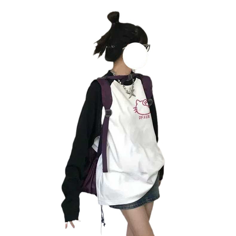 纯棉撞色插肩长袖T恤女春秋美式重磅欧货学生小众别致打底衫上衣