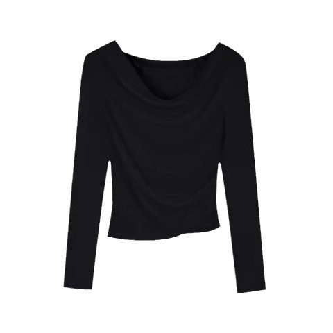 早秋辣妹方领短款上衣女秋装新款修身内搭打底衫长袖T恤女