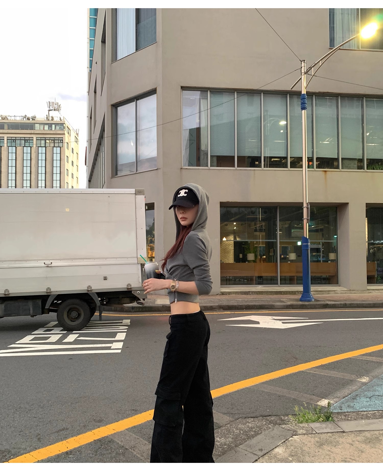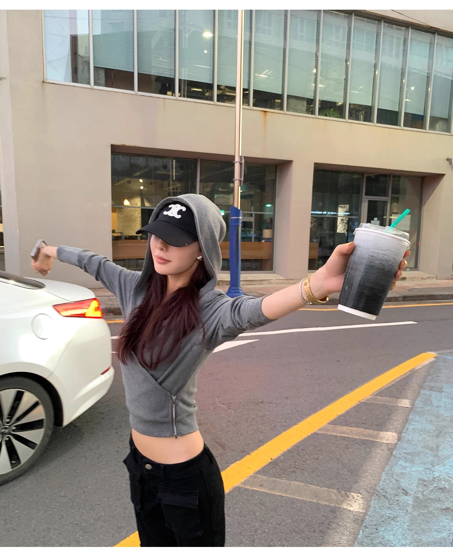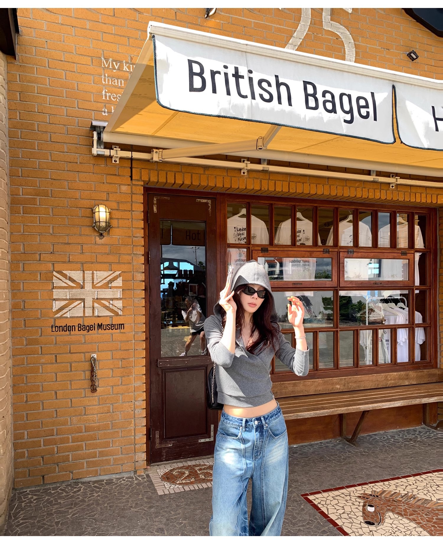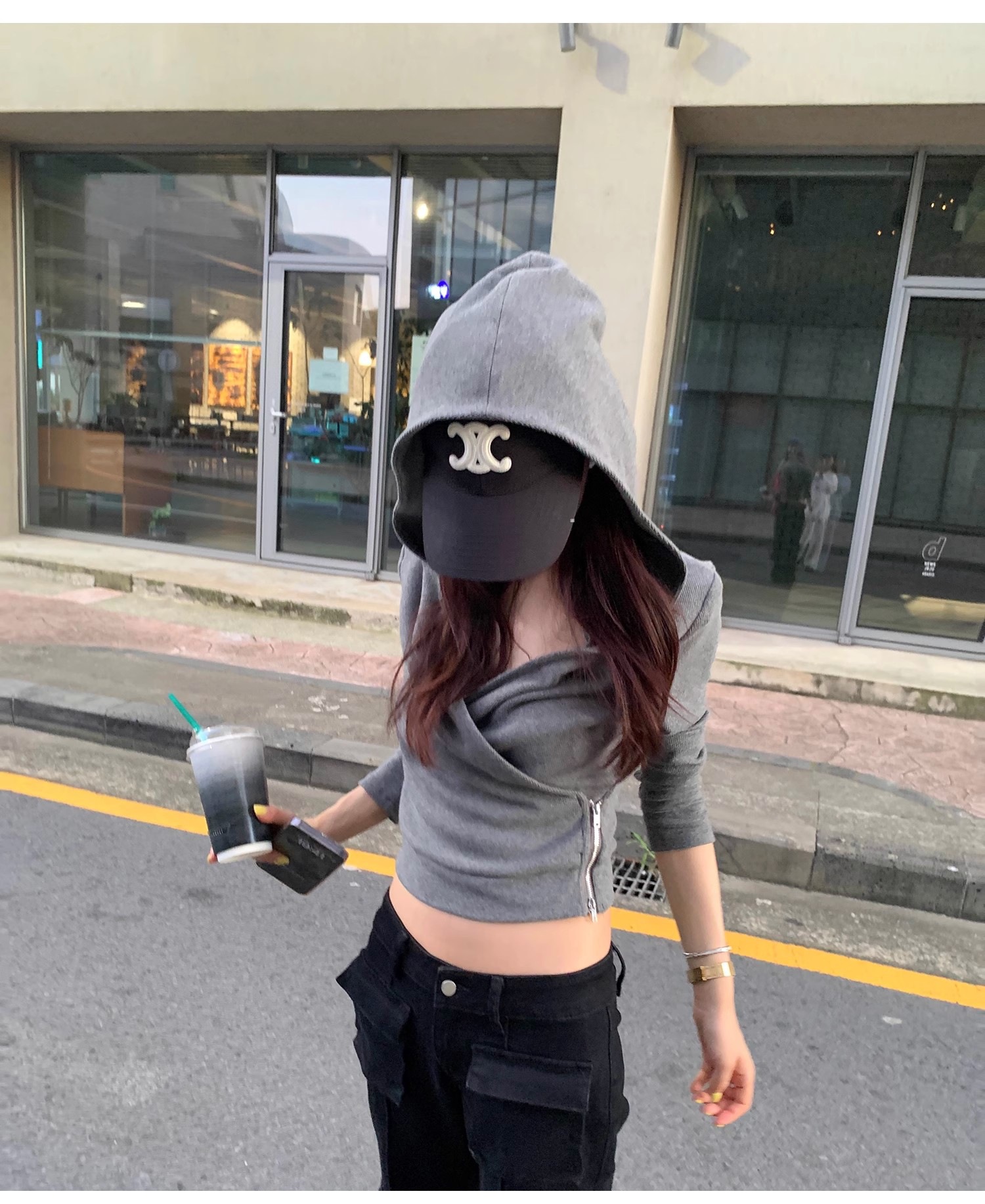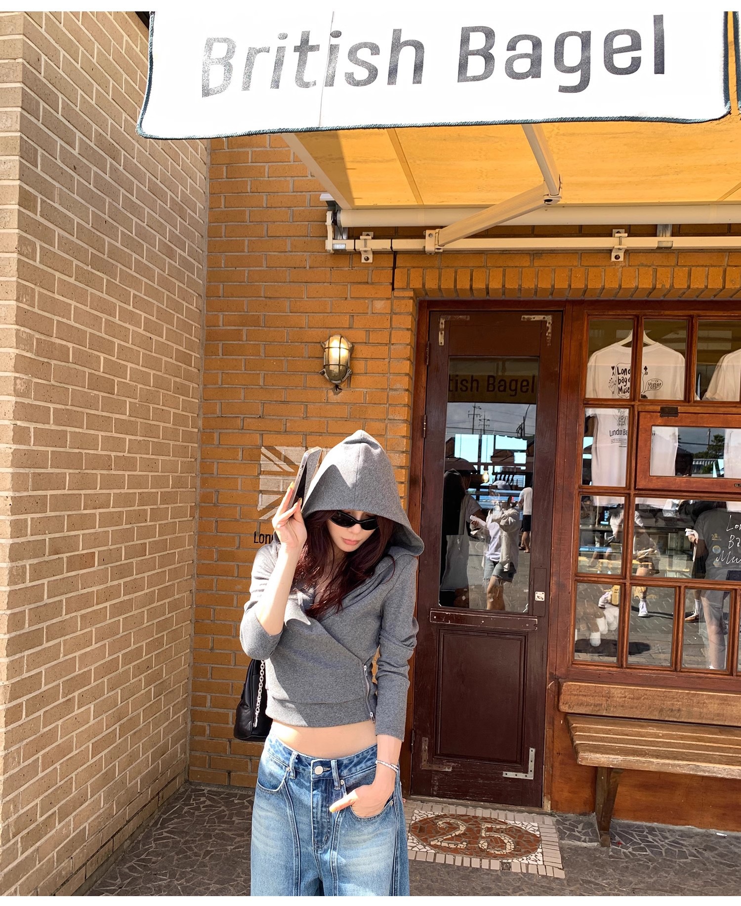 2025新款欧美辣妹交叉高腰打底连帽运动休闲开衫两穿上衣T恤女冬