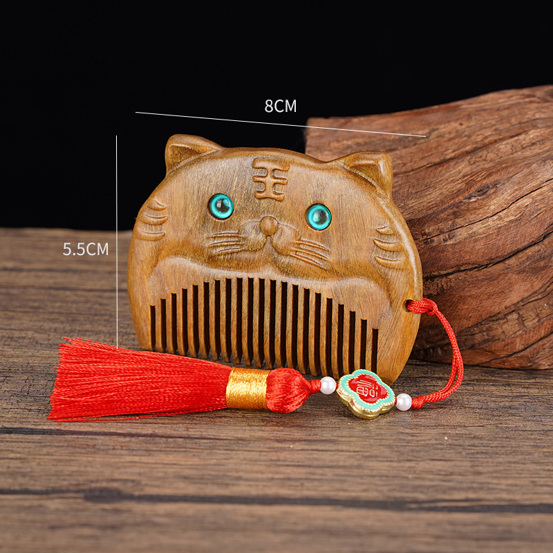 绿檀木生肖口袋梳雕花女生小巧便携美观实用包包梳按摩檀木梳