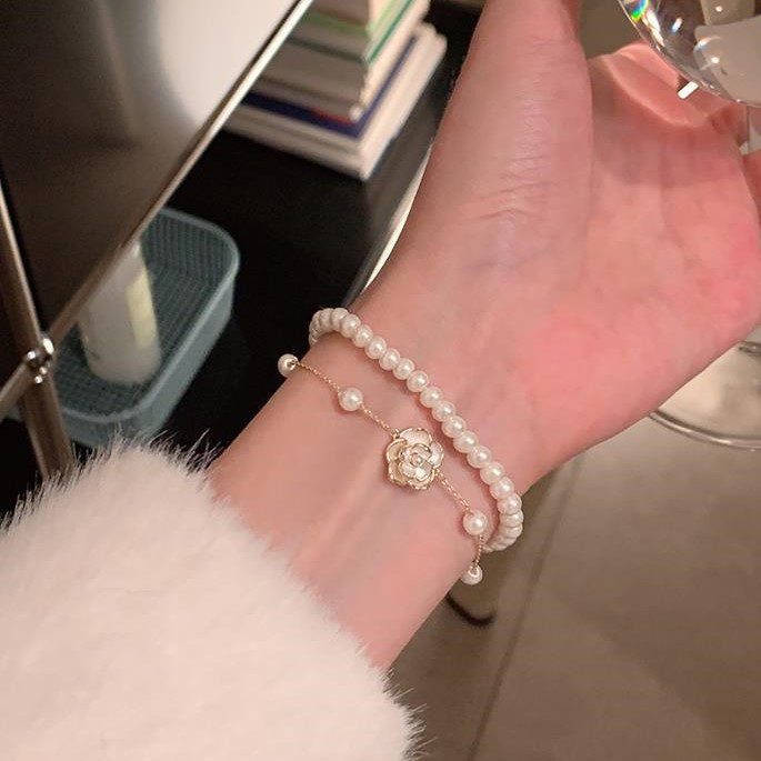 春季珍珠山茶花双层手链女生轻奢精致小众设计感高级