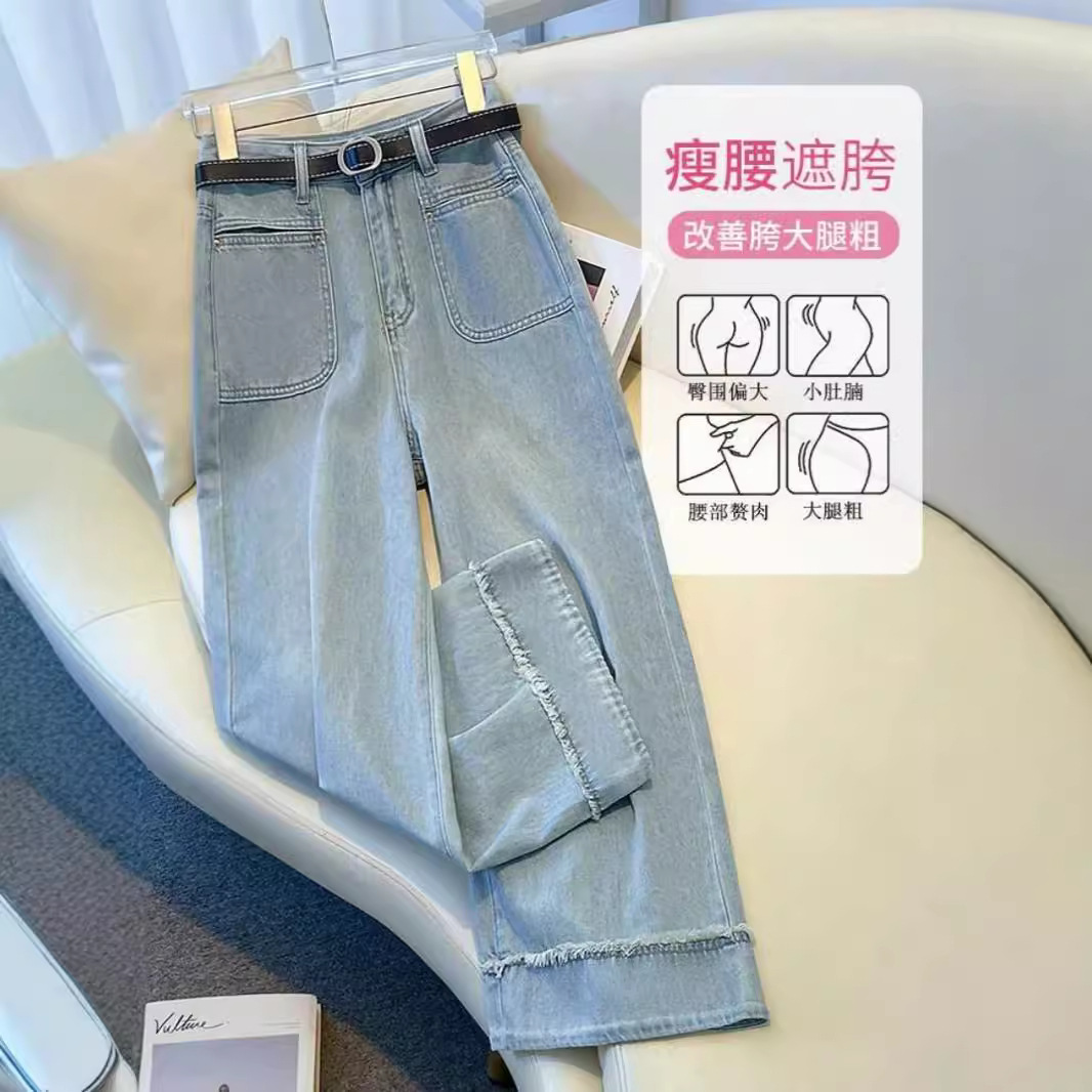 高腰牛仔裤女夏季薄款新款垂感毛边宽松复古九分裤白色直筒裤