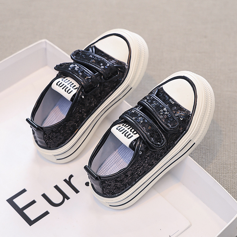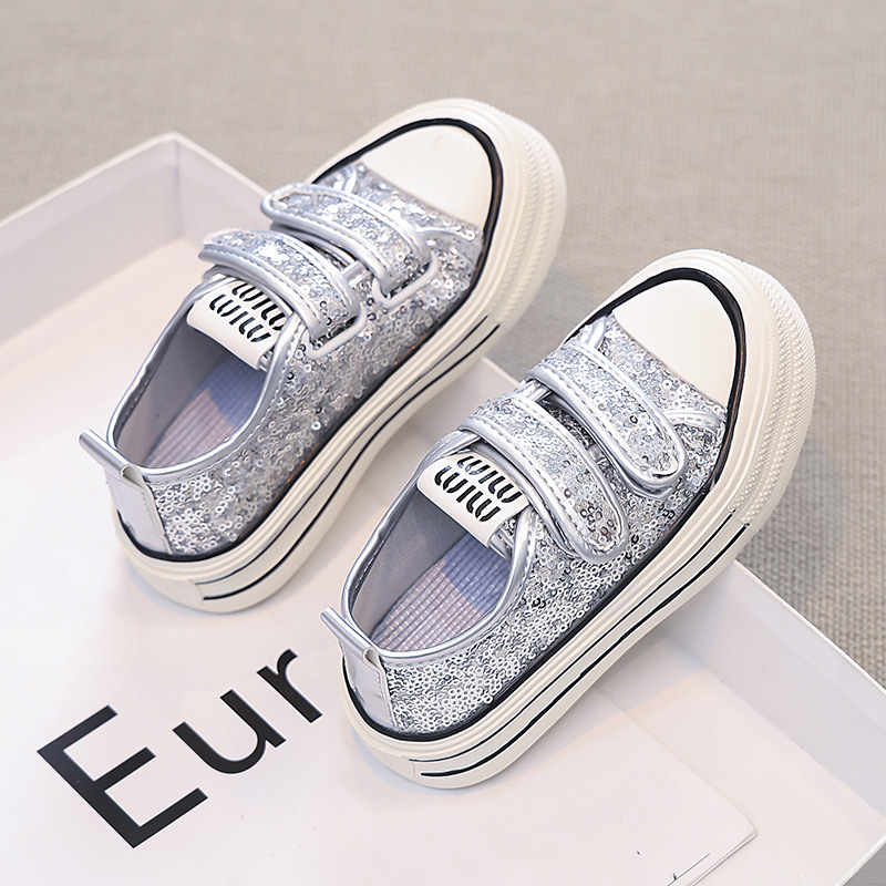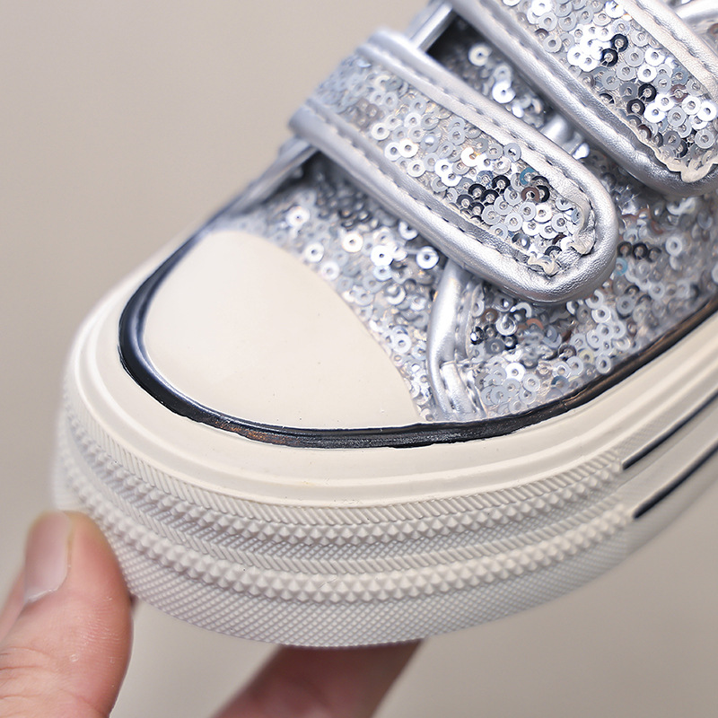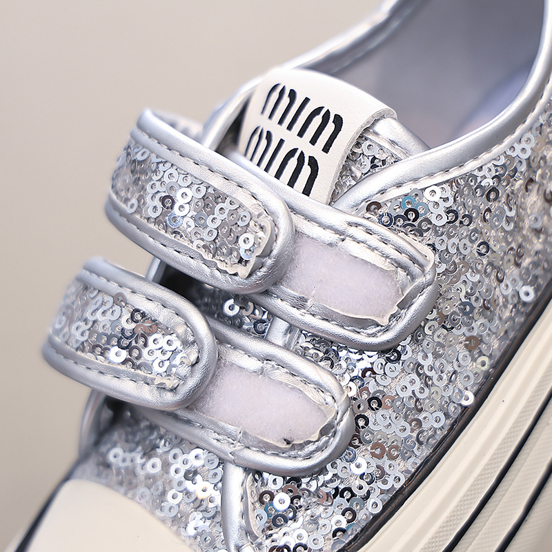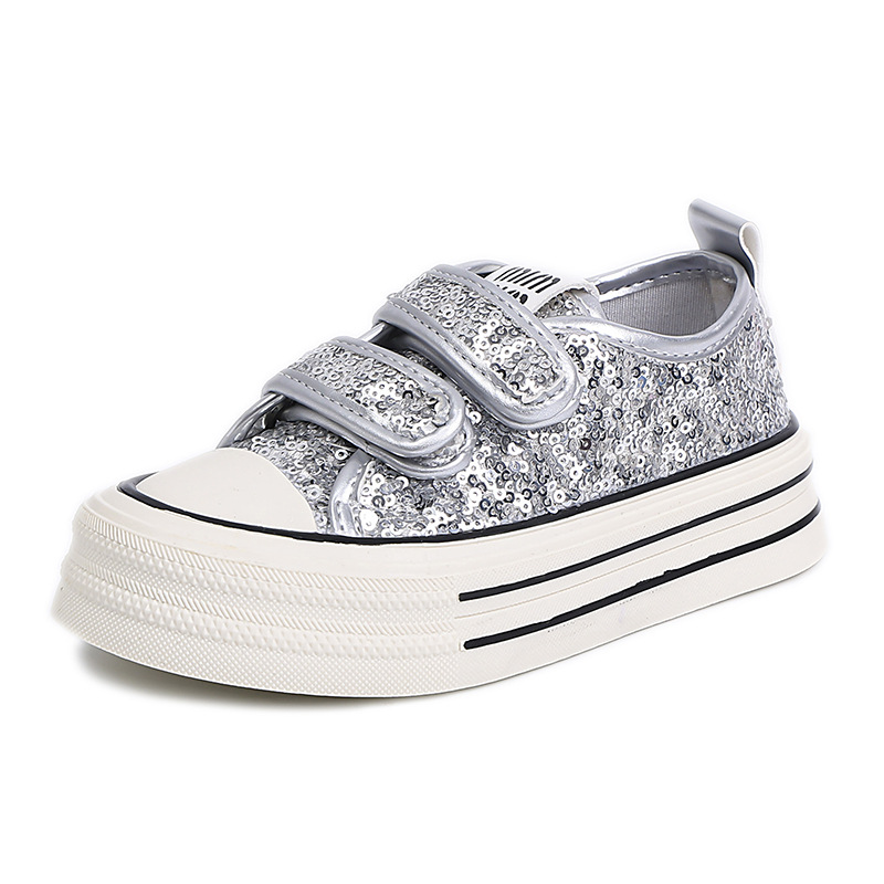 2025春秋新款女童运动鞋儿童板鞋银色亮片休闲鞋厚底中大童松糕鞋