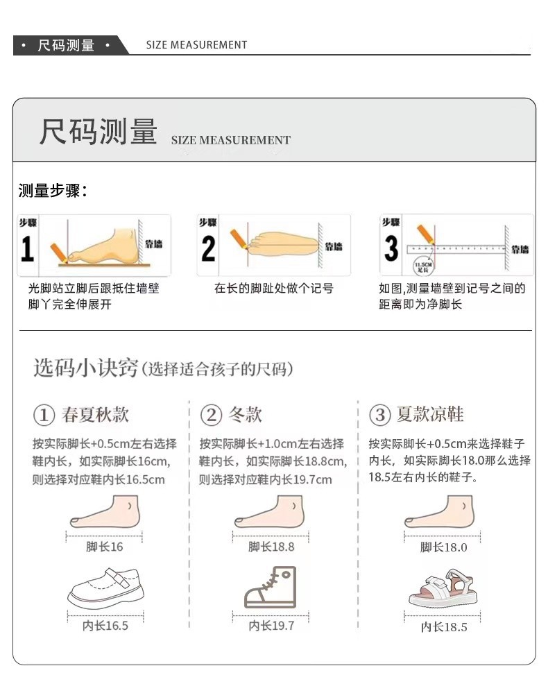 21码内长13.5cm22码内长14cm23码内长14.4cm24码内长15cm25码内长15.3cm26码内长15.6cm27码内长16cm28码内长16.8cm29码内长17.5cm30码内长18.2cm31码内长18.6cm32码内长19cm33码内长19.8cm34码内长20.5cm