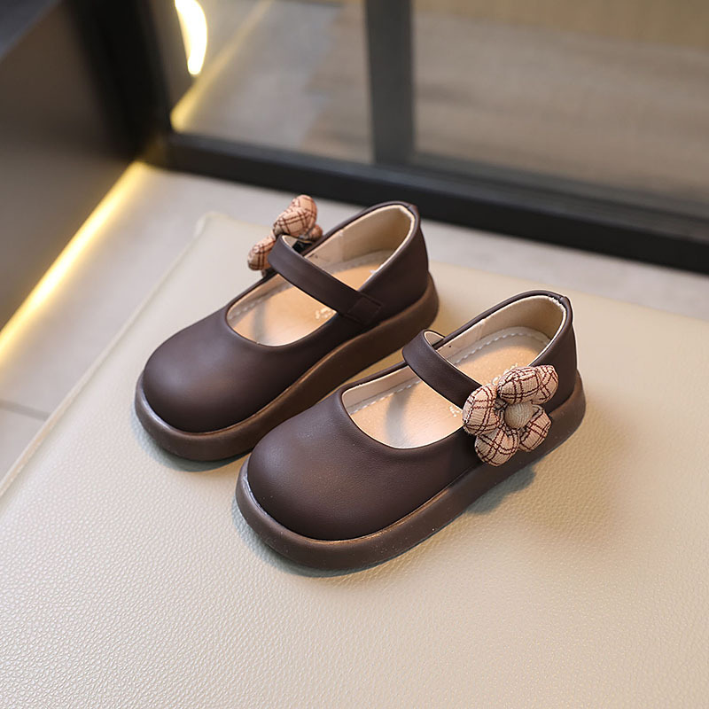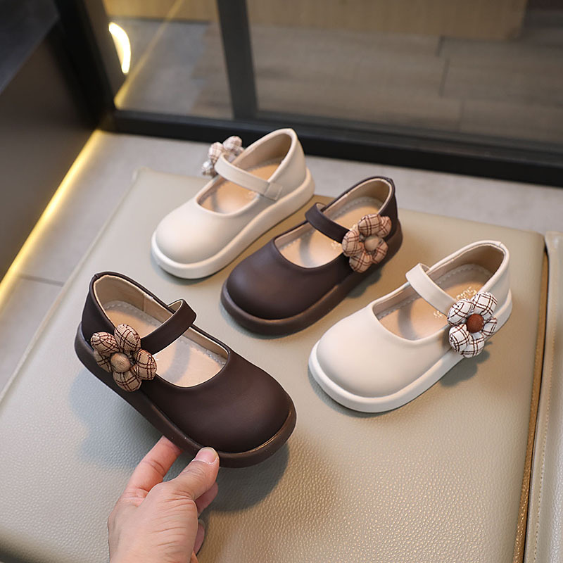 女童花朵公主鞋2025春季新款儿童圆头厚底皮鞋韩版小童玛丽珍单鞋