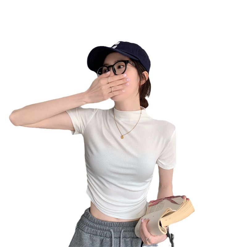 半高领短款黑色紧身上衣女装新款夏季设计感小众短袖t恤女