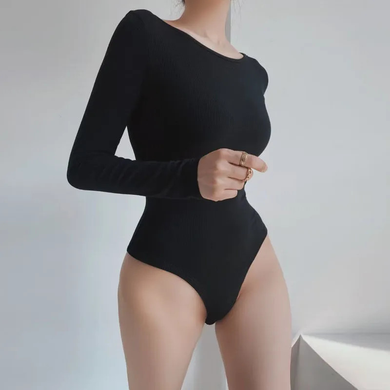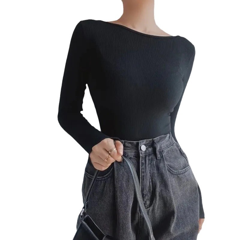 纯欲风长袖T恤女新款欧美性感圆领大露背紧身显瘦连体打底衫上衣