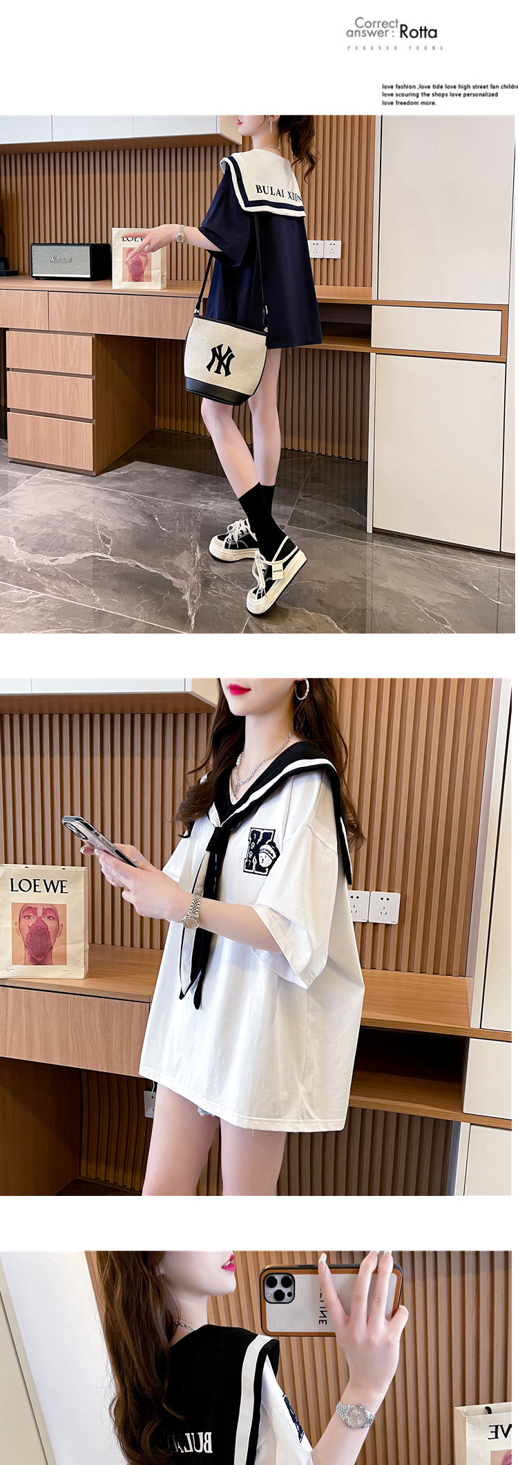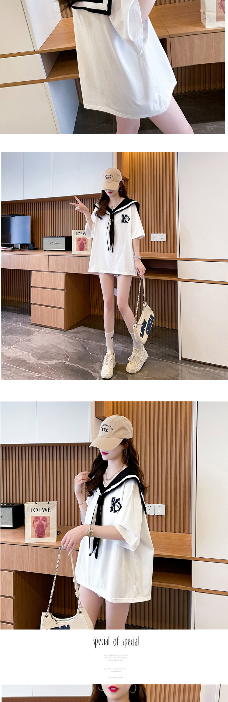 小清新减龄系带领短袖T恤女年新款夏季宽松设计感上衣