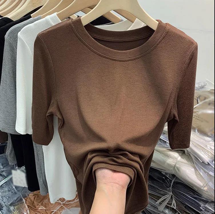 夏季纯色面膜百搭短袖T恤女中袖五分袖体恤打底衫修身显瘦上衣潮
