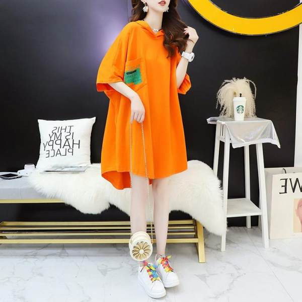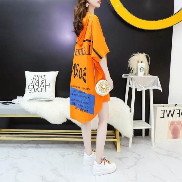春夏季大码女装短袖t恤裙中长款韩版减龄上衣潮