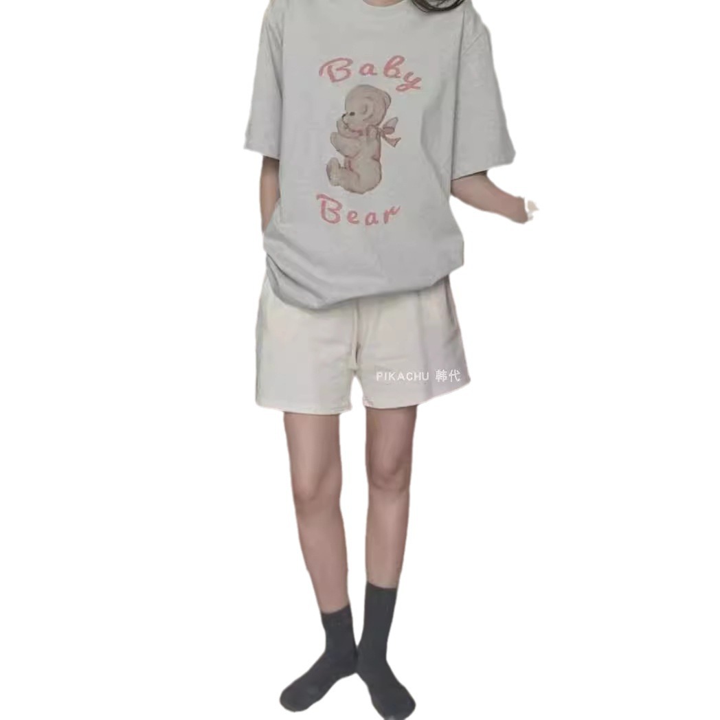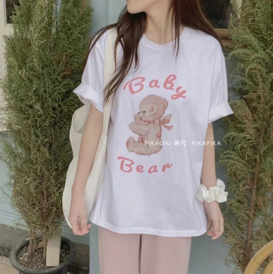 年夏季新款韩系chic别致上衣女宽松显瘦短袖美式复古正肩t恤