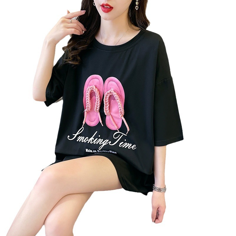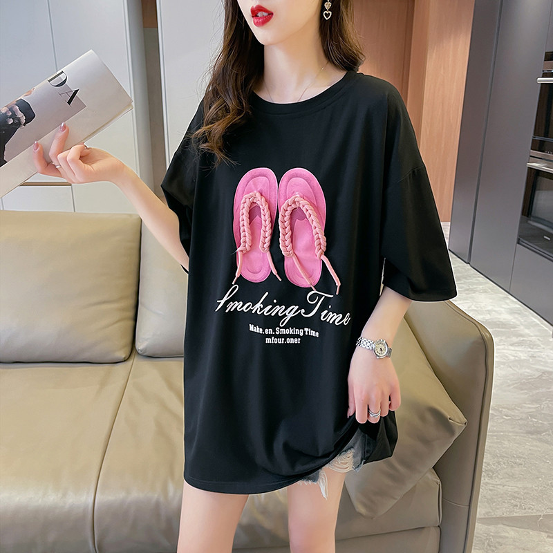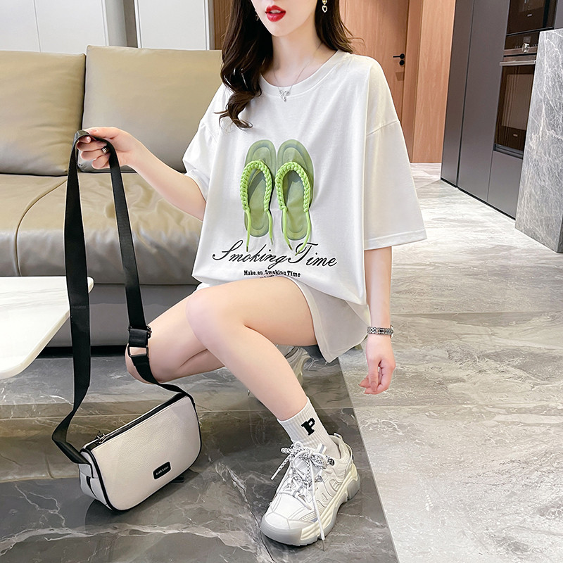 韩版oversize学院风后包领立体中长款短袖T恤女韩版上衣
