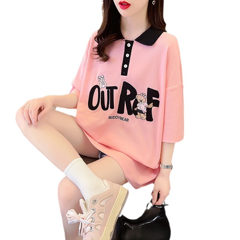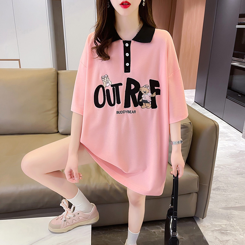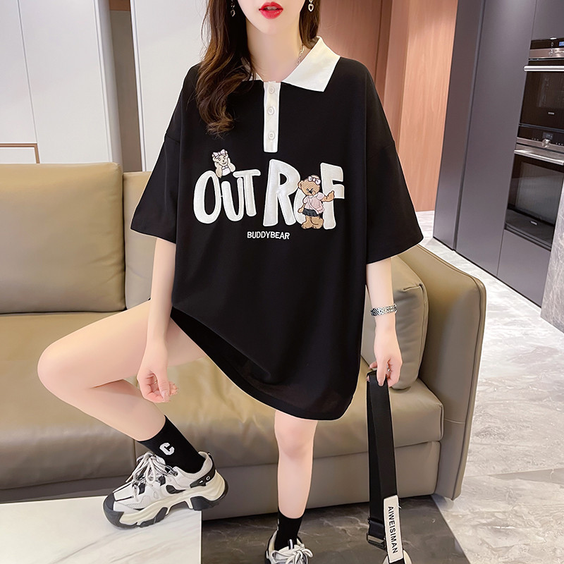 中长款POLO领日系短袖T恤女生年新款小众设计感爆款十三行