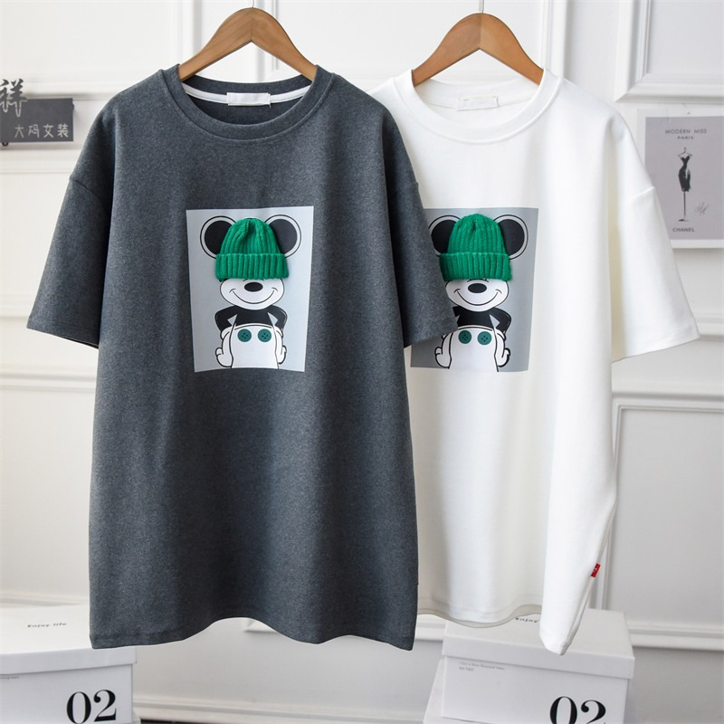 卡通印花字母夏季新款圆领休闲情侣短袖T恤男女宽松半袖DT557