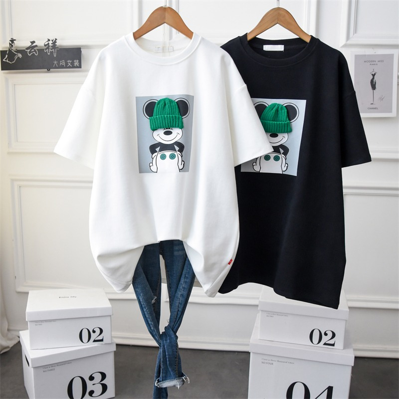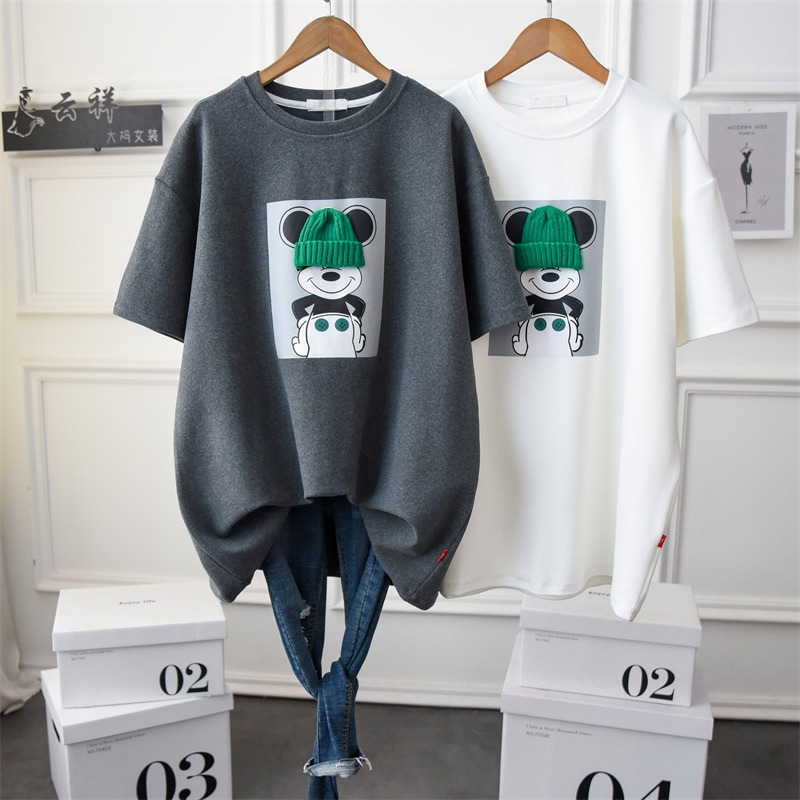 夏季韩版中长款宽松大版短袖T恤女年新款小众设计感洋气上衣