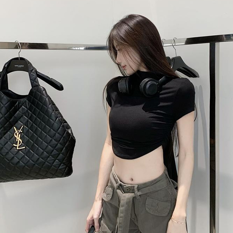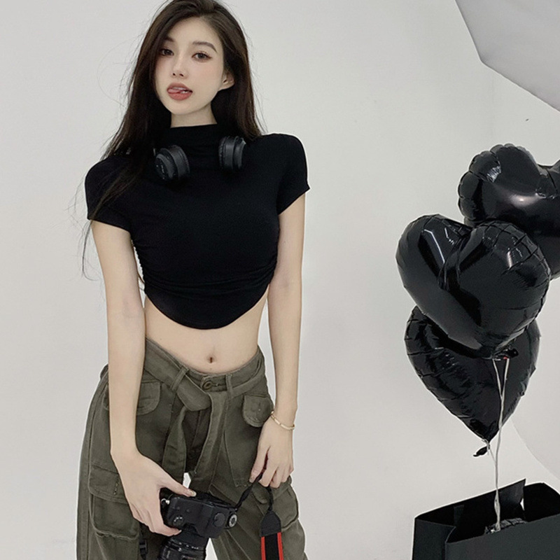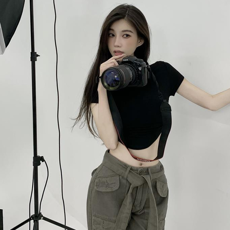 罗纹夏季辣妹设计感露脐小众不规则短款