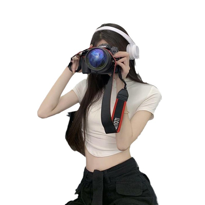 圆领正肩小熊短袖t恤女春夏新款修身纯欲辣妹显瘦韩版减龄短上衣