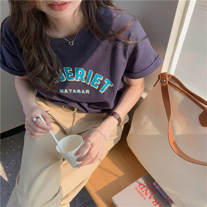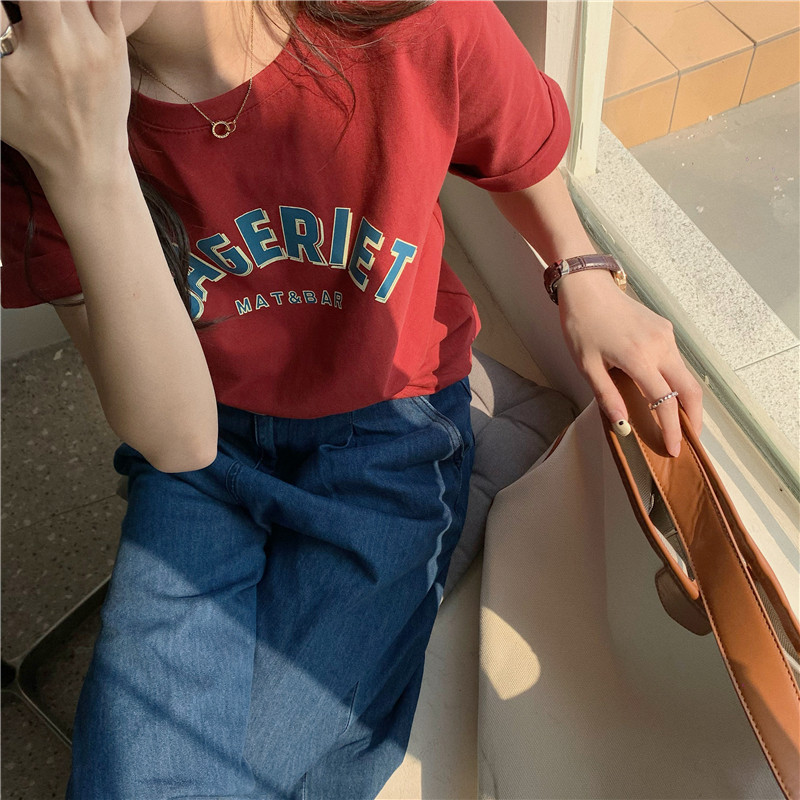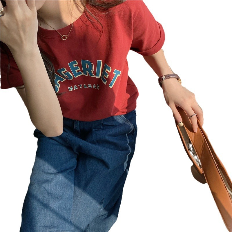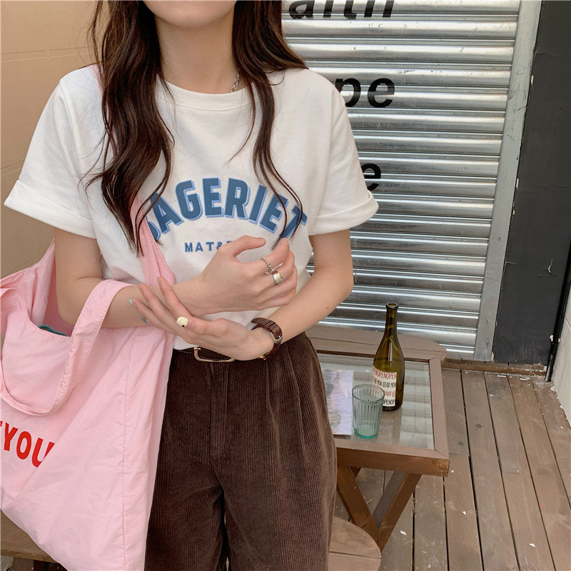 纯棉欧美风短款短袖T恤女甜辣风洋气时髦设计感韩范欧货上衣