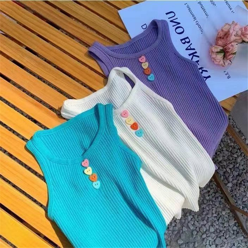 女童夏装背心吊带宝宝网红洋气儿童个性潮牌韩版彩色爱心纽扣外穿