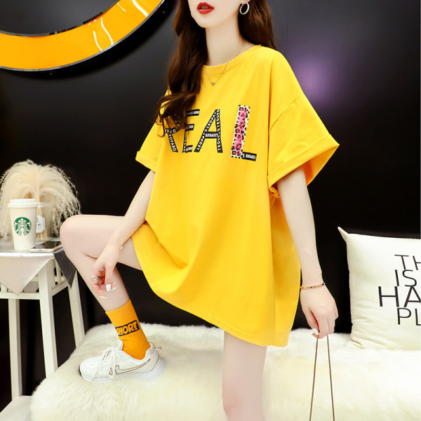 后背开叉短袖T恤女中长款夏季新款韩版宽松设计感洋气半袖上衣潮