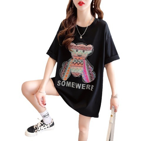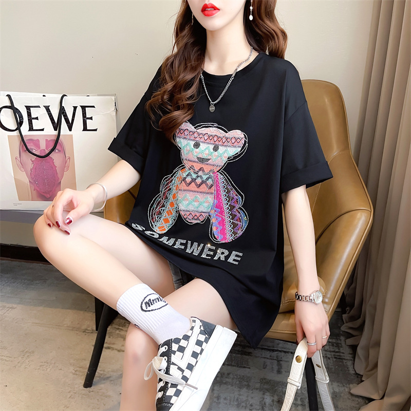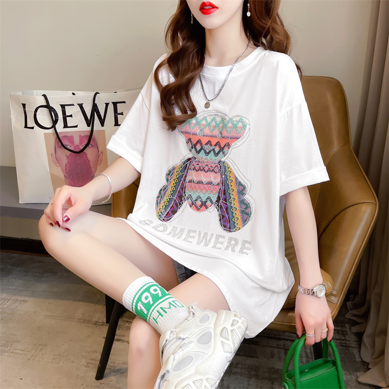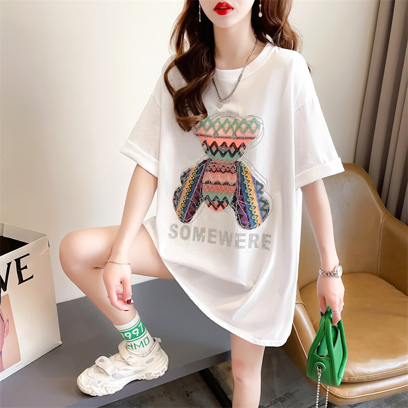重工绣花贴布烫钻中长款短袖t恤女