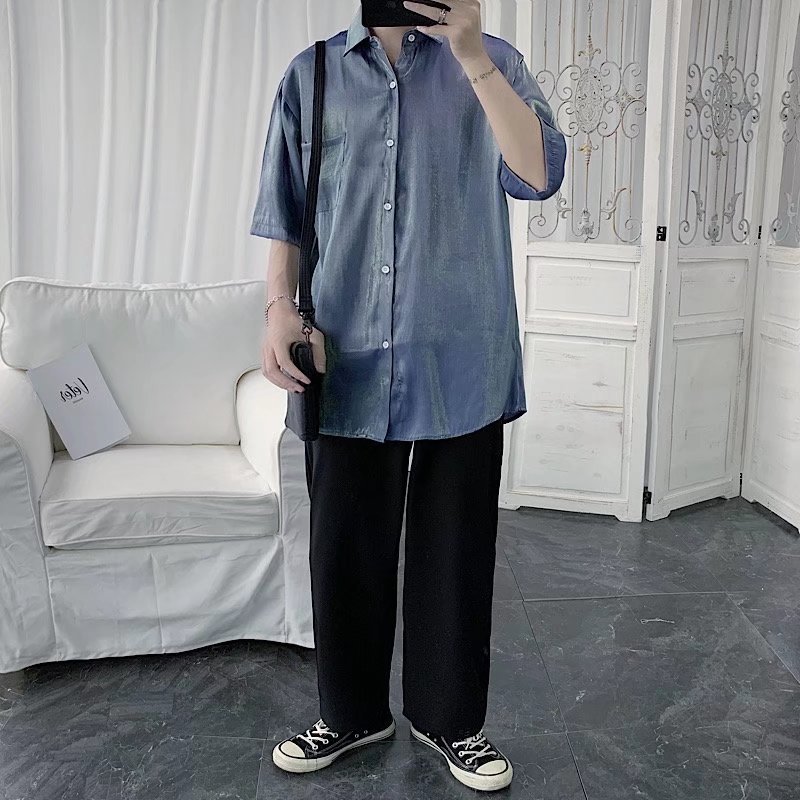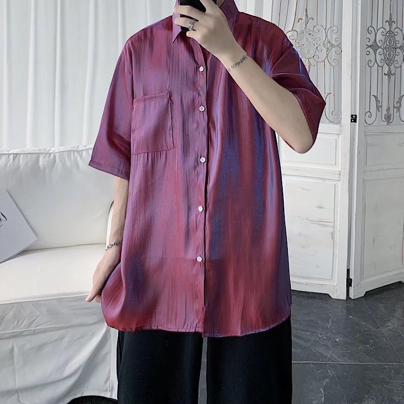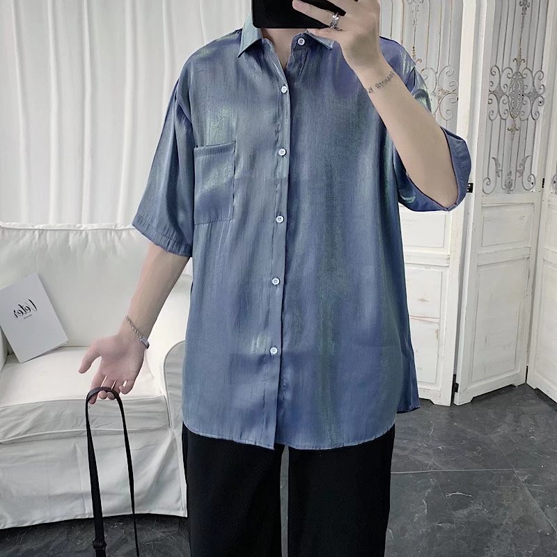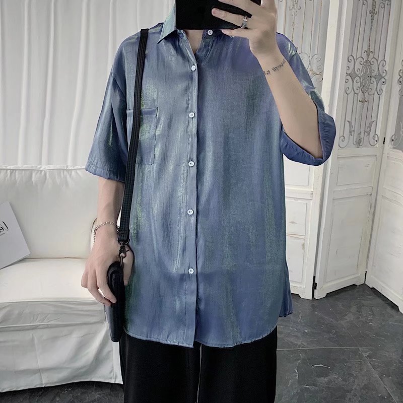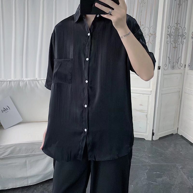 禁欲系短袖衬衫男士年夏季ins设计感小众五分袖潮流冰丝衬衣