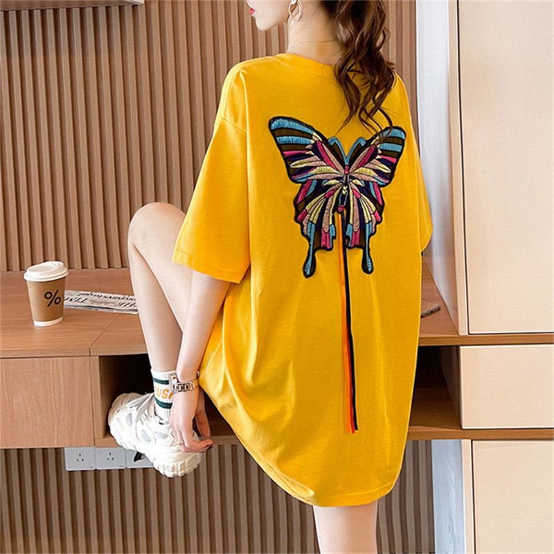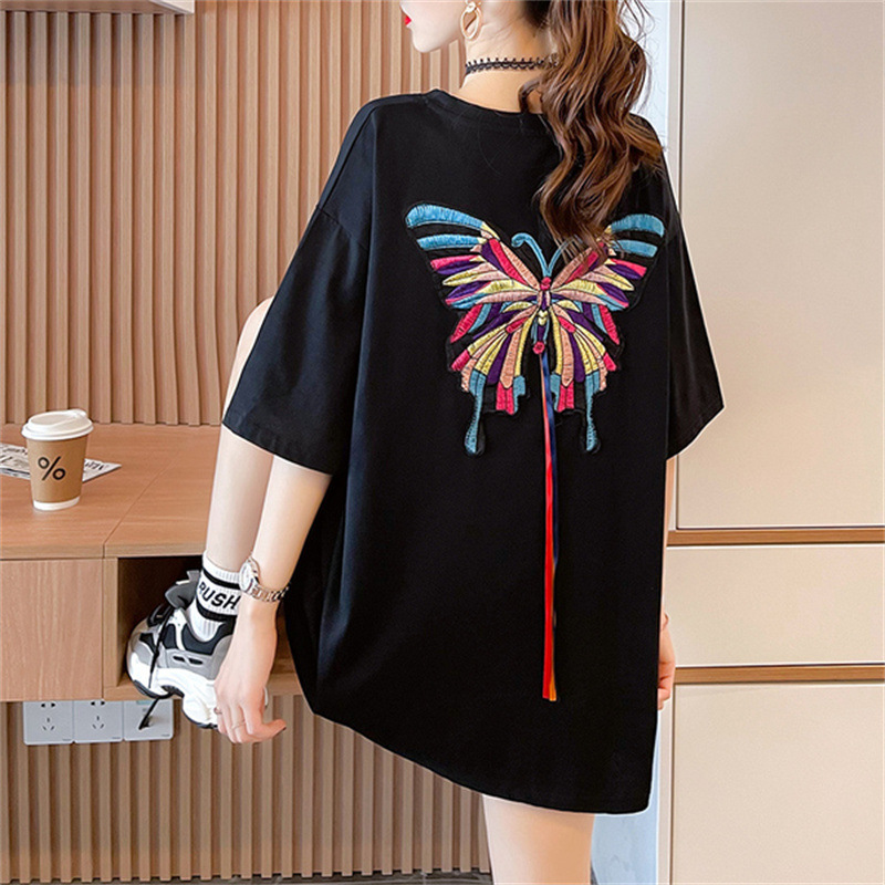 棉质欧货蝴蝶刺绣t恤女短袖2025新款洋气减龄百搭胖妹妹显瘦夏装