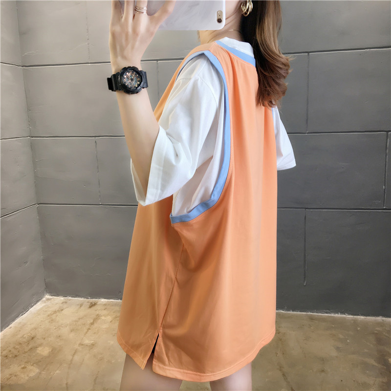 假两件套纯棉年新款球衣球服透气百搭短袖撞色T恤女学生上衣