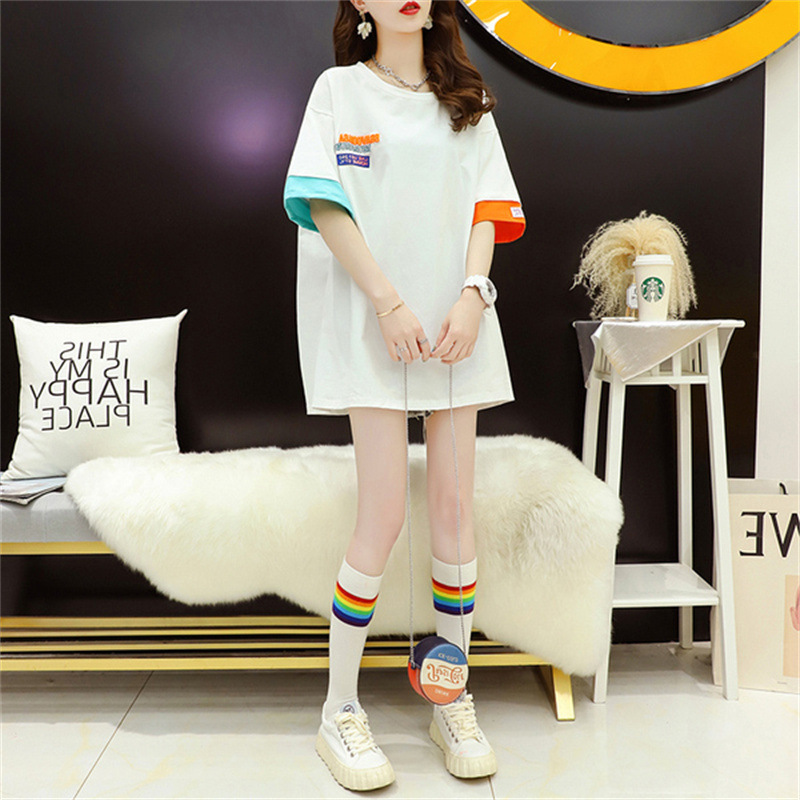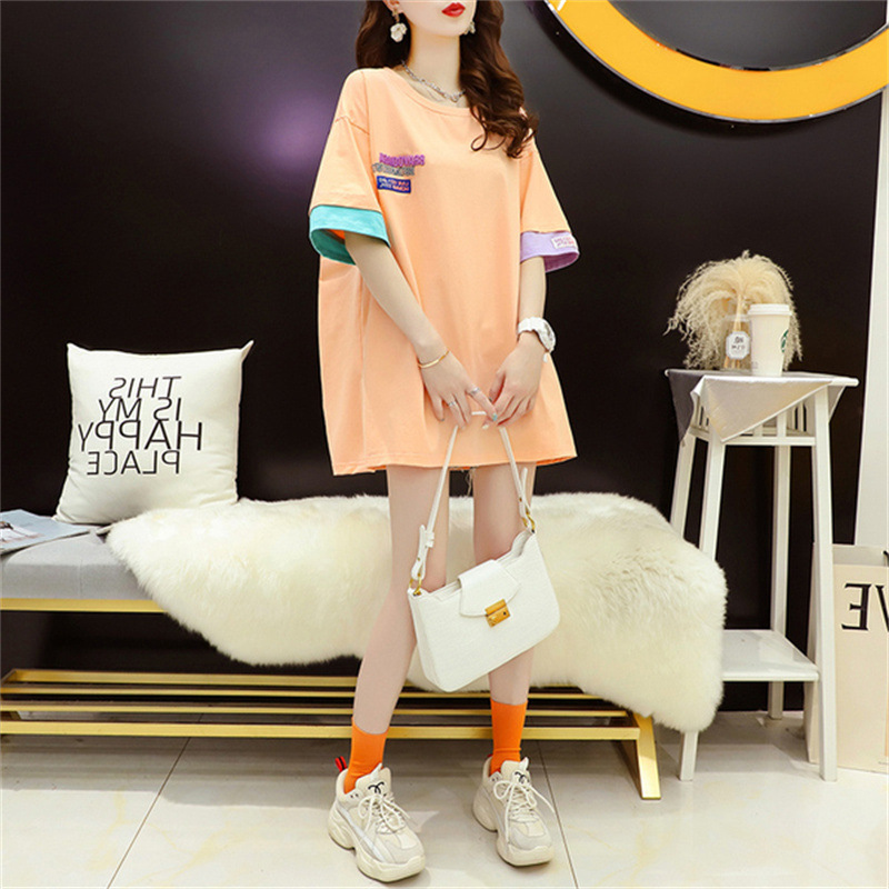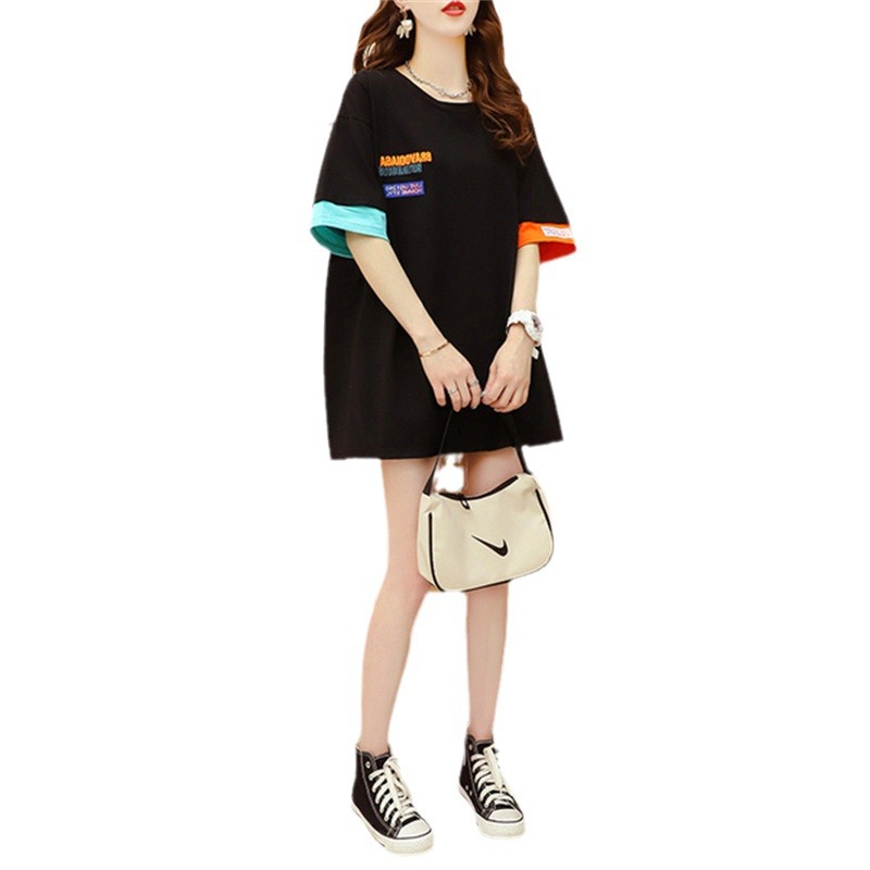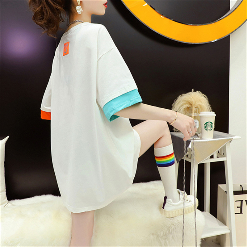 棉质中长款年新款假两件短袖t恤女学生时尚韩版宽松薄款ins潮