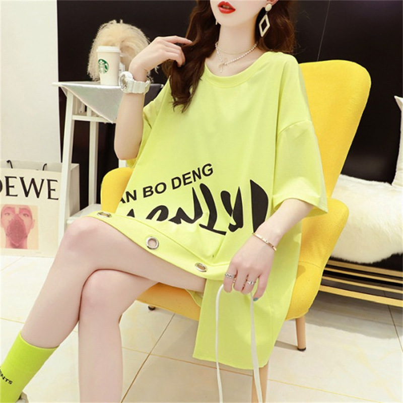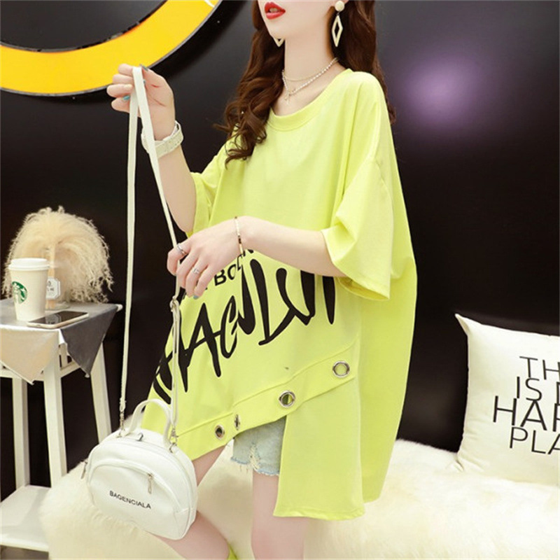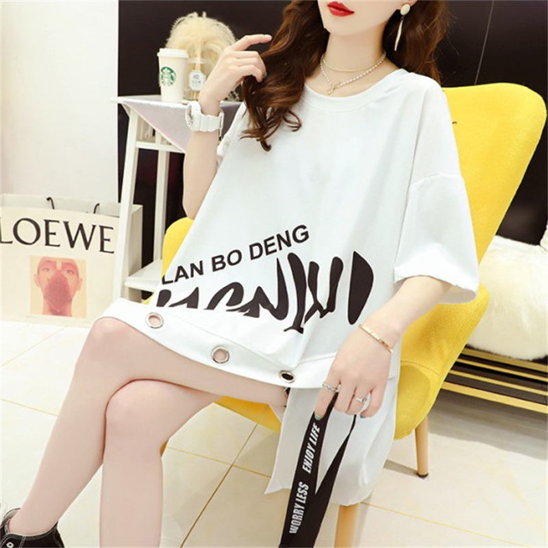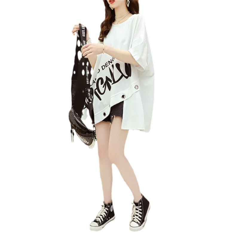 短袖t恤女夏韩版宽松中长款设计感小众不规则开叉下衣失踪上衣潮