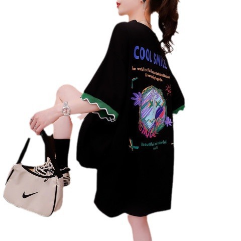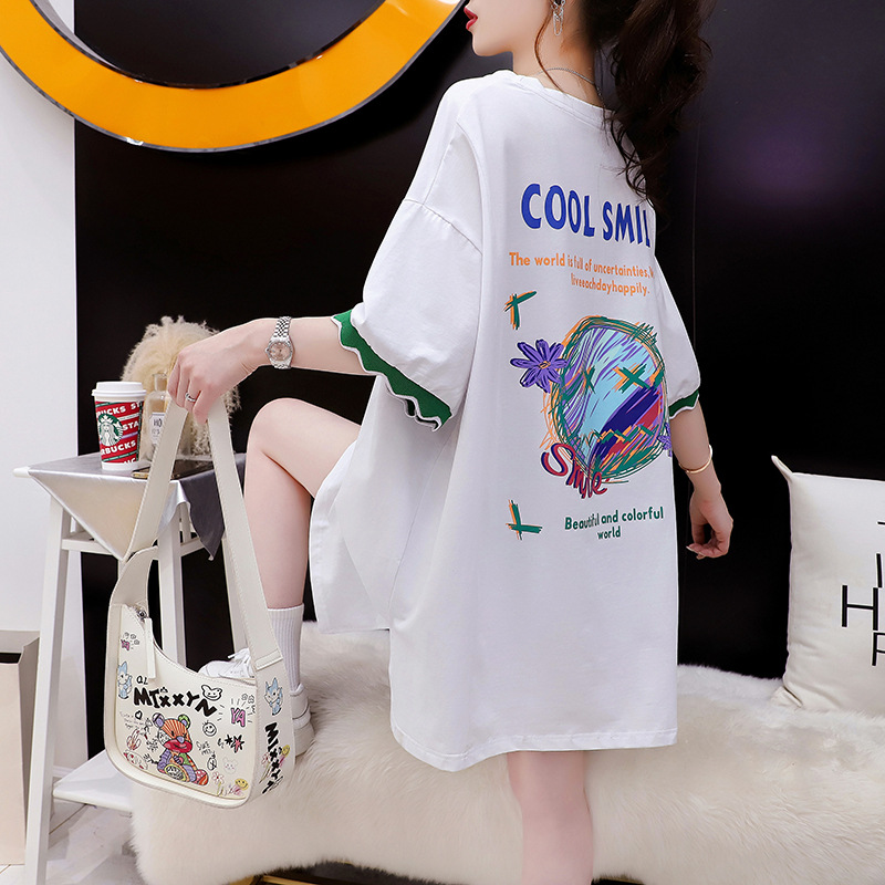 中长款纯棉短袖t恤女夏装新款宽松特大码女装胖mm显瘦上衣潮T