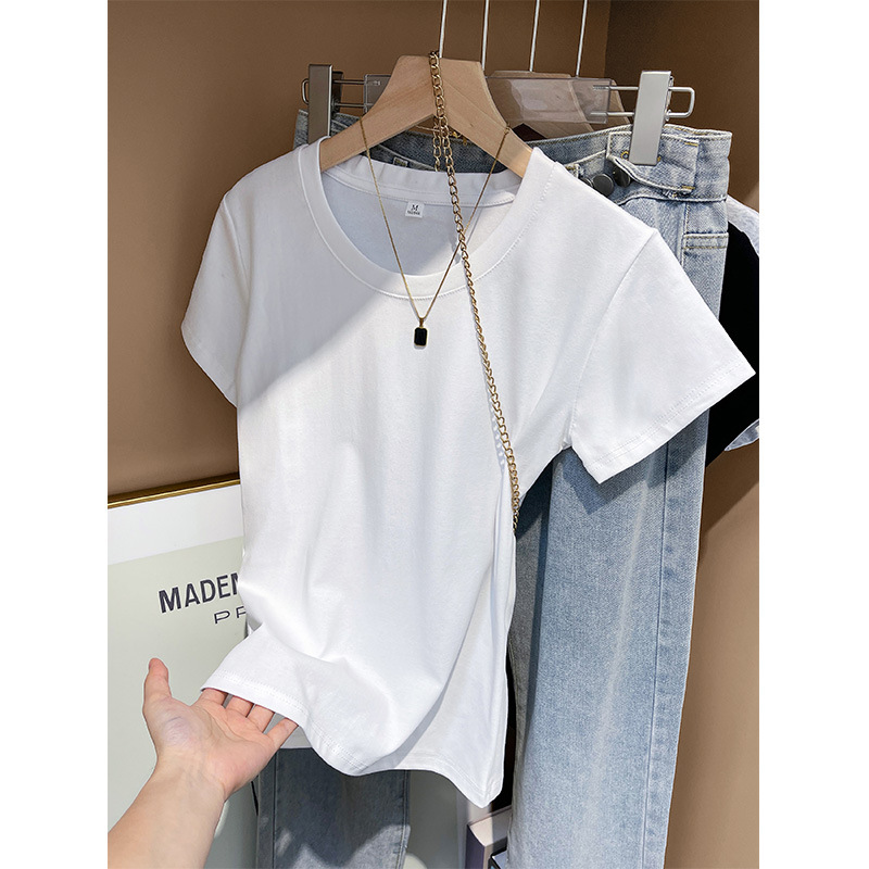 经典百搭基础款纯色U领短袖T恤女美式辣妹修身显瘦半袖上衣低领