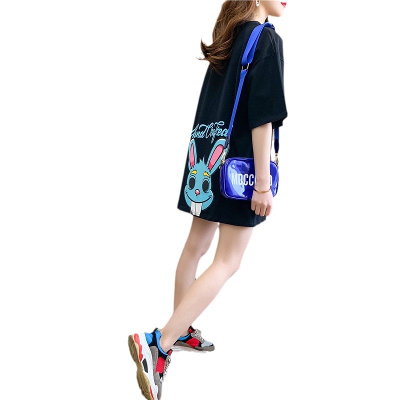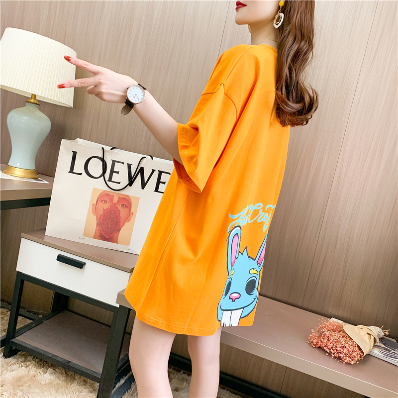 失踪兔年卡通中长款短袖t恤女年新款大码宽松小众设计感