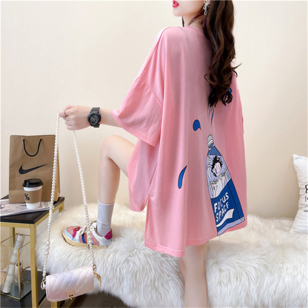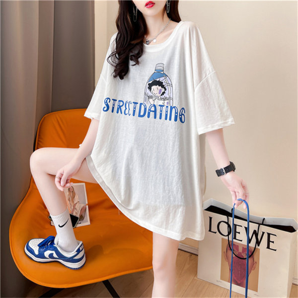 新款卡通宽松韩版短袖t恤女夏季中长款白色盐系上衣大码女装