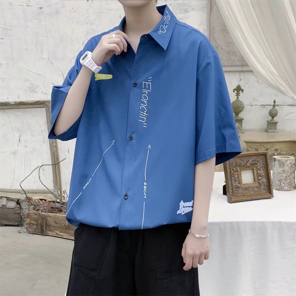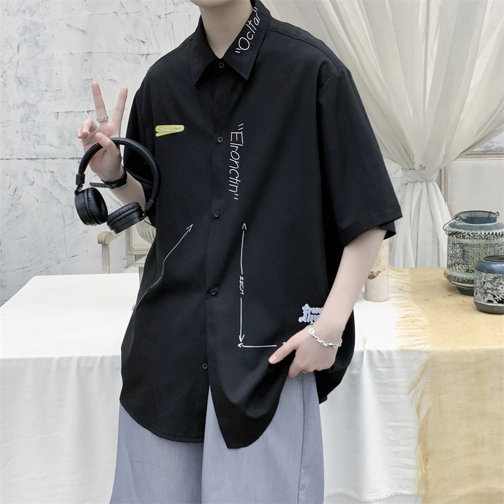 冰丝衬衫男短袖夏季薄款日系潮牌设计感小众半袖潮流宽松休闲衬衣
