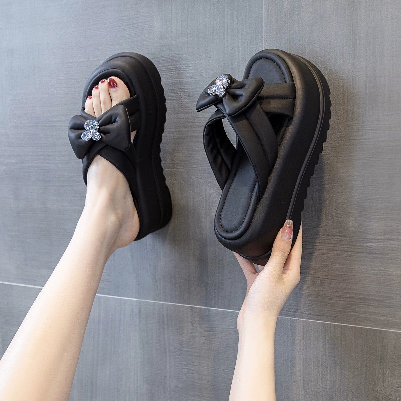 厚底增高蝴蝶结一字拖鞋女外穿夏季新款百搭配裙子沙滩凉拖鞋