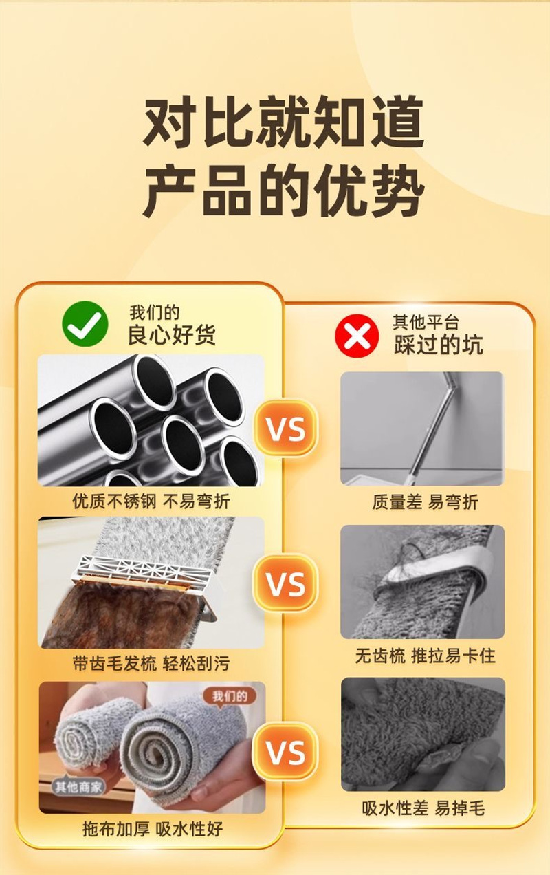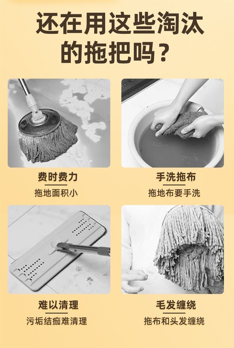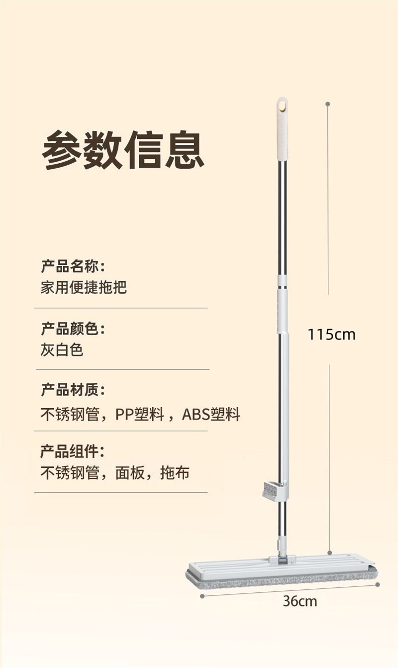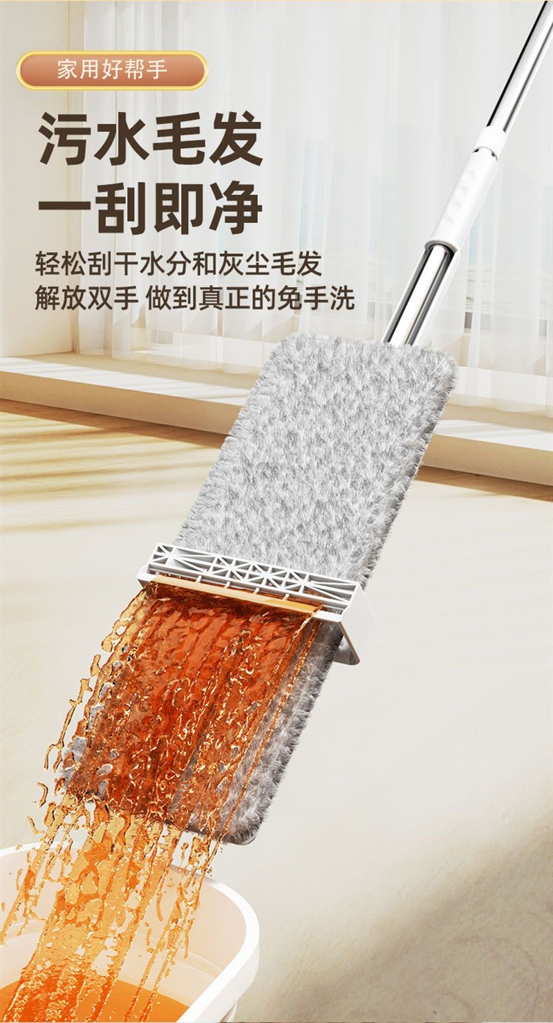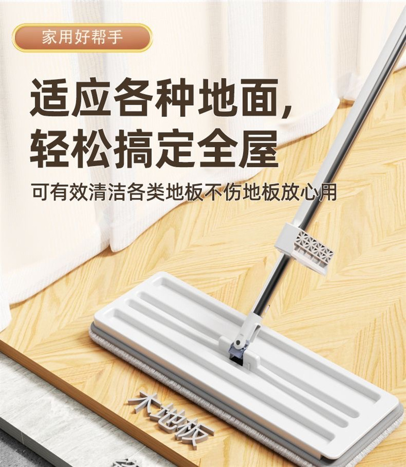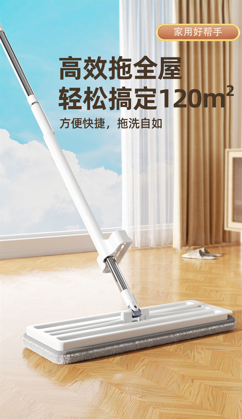 新款免手洗平板拖把家用懒人神器小号平板拖把不锈钢杆