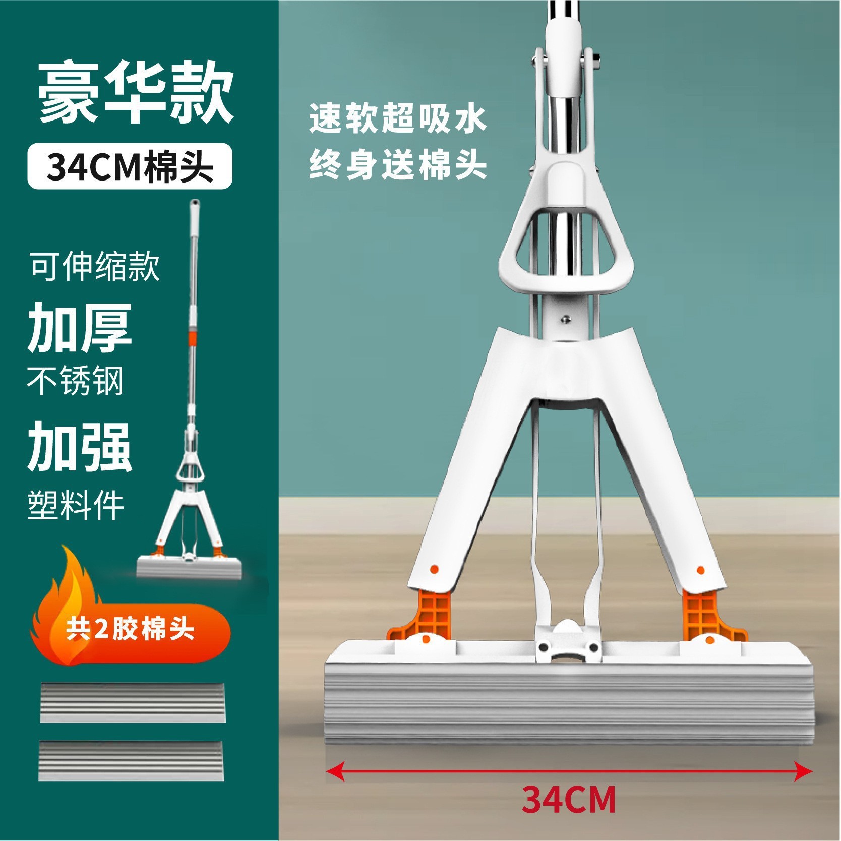 海绵拖把胶棉拖把家用懒人免手洗拖把对折式吸水拖把