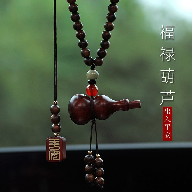 高档汽车挂件檀木桃木葫芦车内饰吊坠出入平安符车载后视镜挂饰品