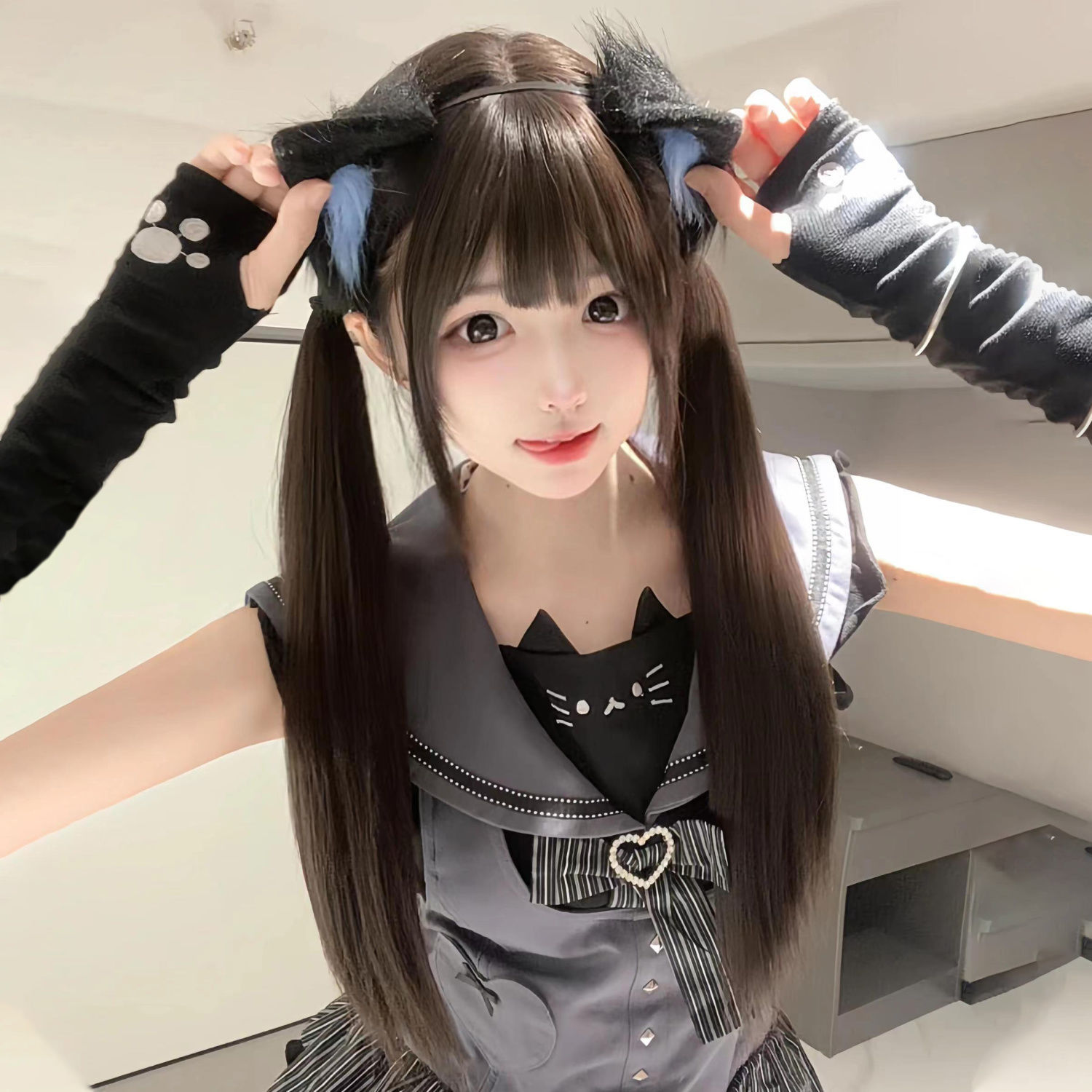 糯叽小咪假毛女长直发Lolita萌妹少萝齐刘海冷棕色75cm直发假发
