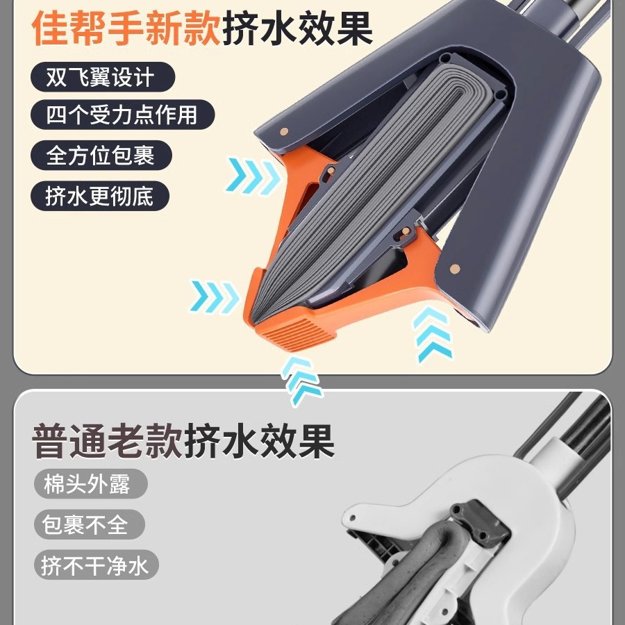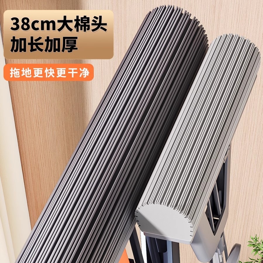 【全包裹挤水】38cm拖把+加强不锈钢杆