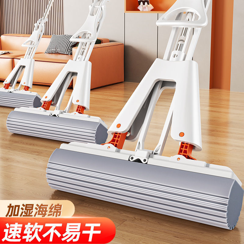 海绵拖把免手洗家用懒人拖把胶棉海绵对折挤水可伸缩不锈钢杆拖布