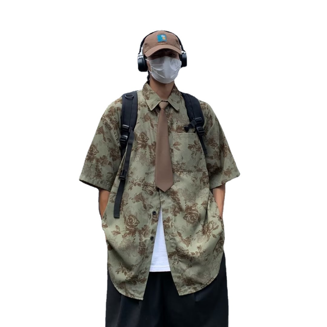 古着vintage巴洛克衬衫男短袖设计感高级冰丝花衬衣美式复古外套