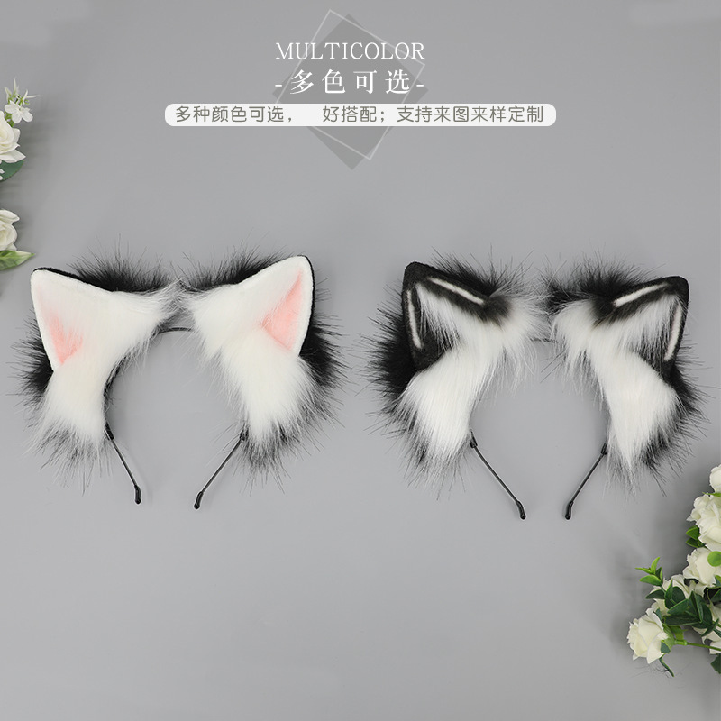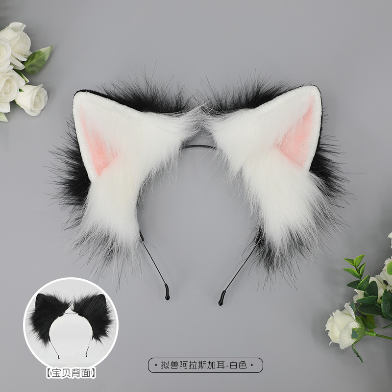 仿真兽耳漫展可爱毛绒装扮头饰派对拟兽阿拉斯加耳朵配饰发饰发箍