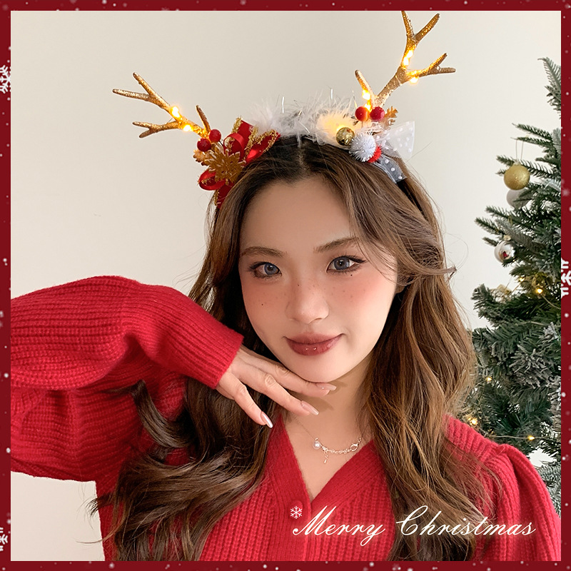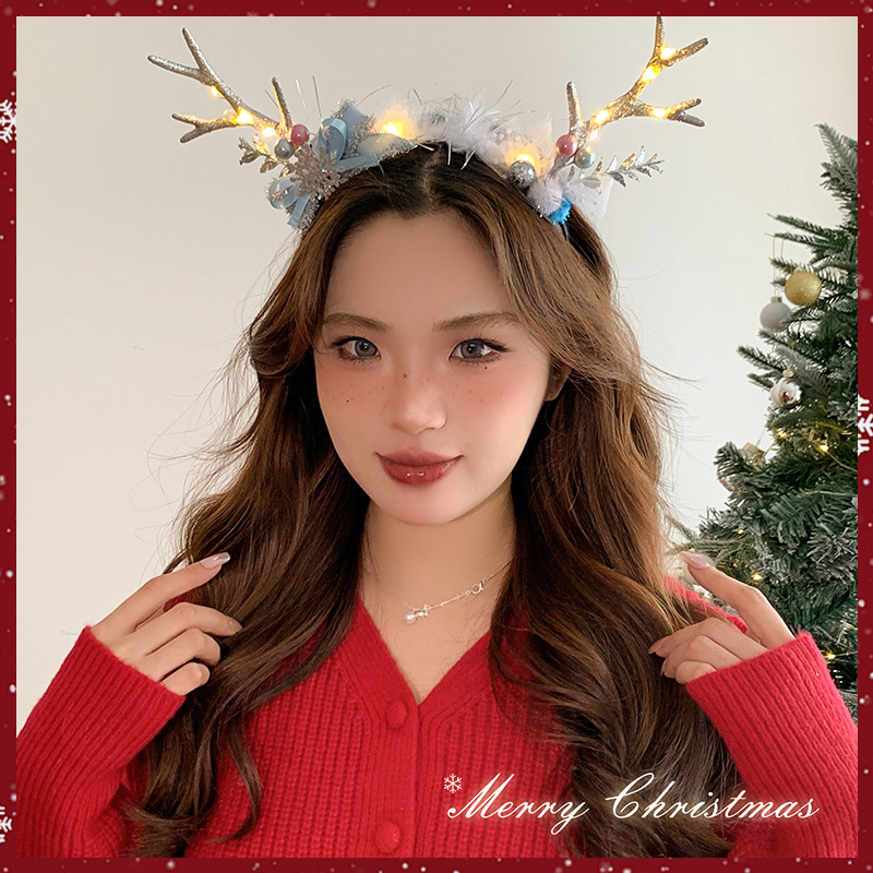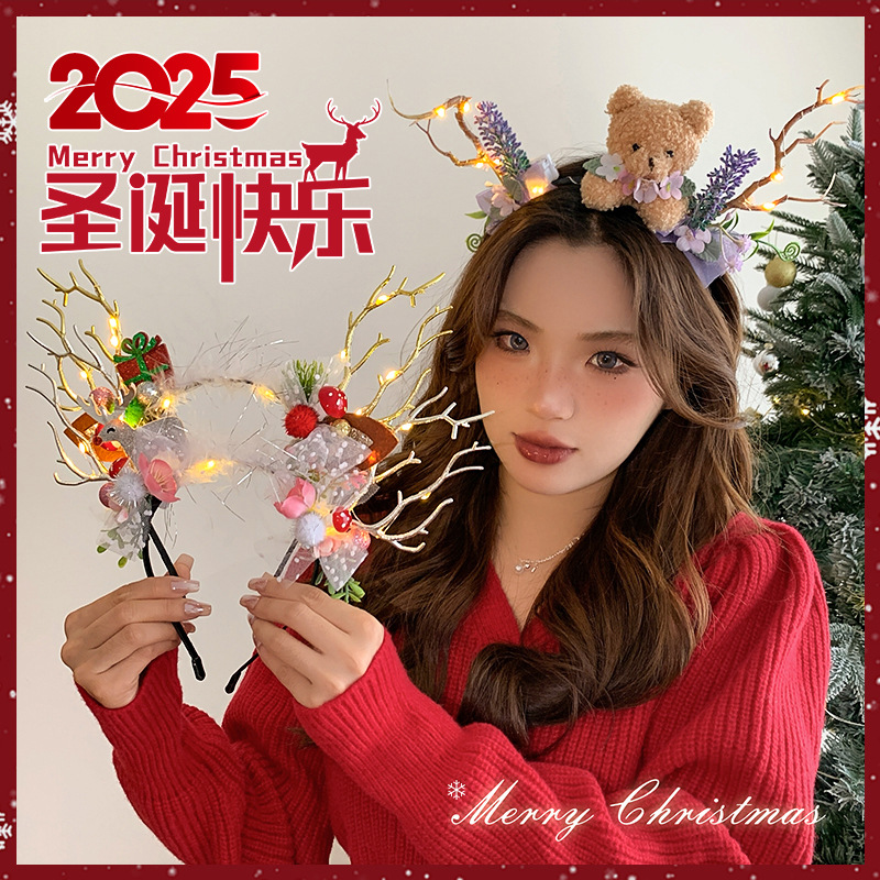 - 圣诞发箍-树枝花朵发箍-带灯